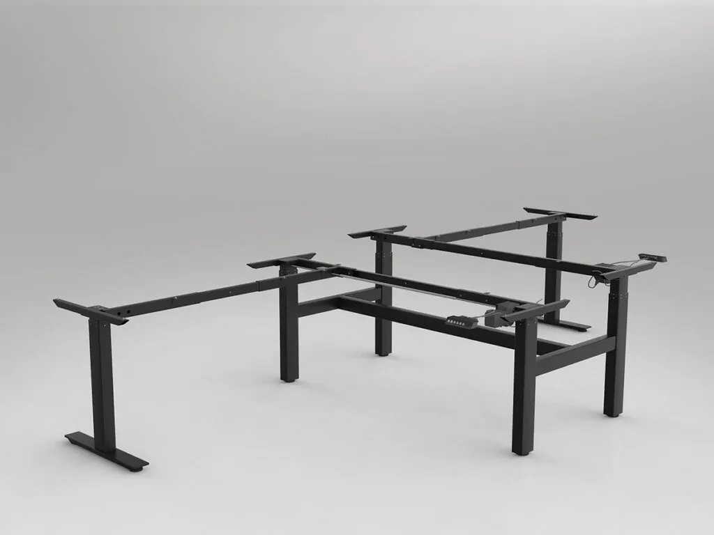 Shared electric 2-column height adjust Agile workstation frame in black powdercoat, to suit 2x 2100mm x 2100mm worktops.