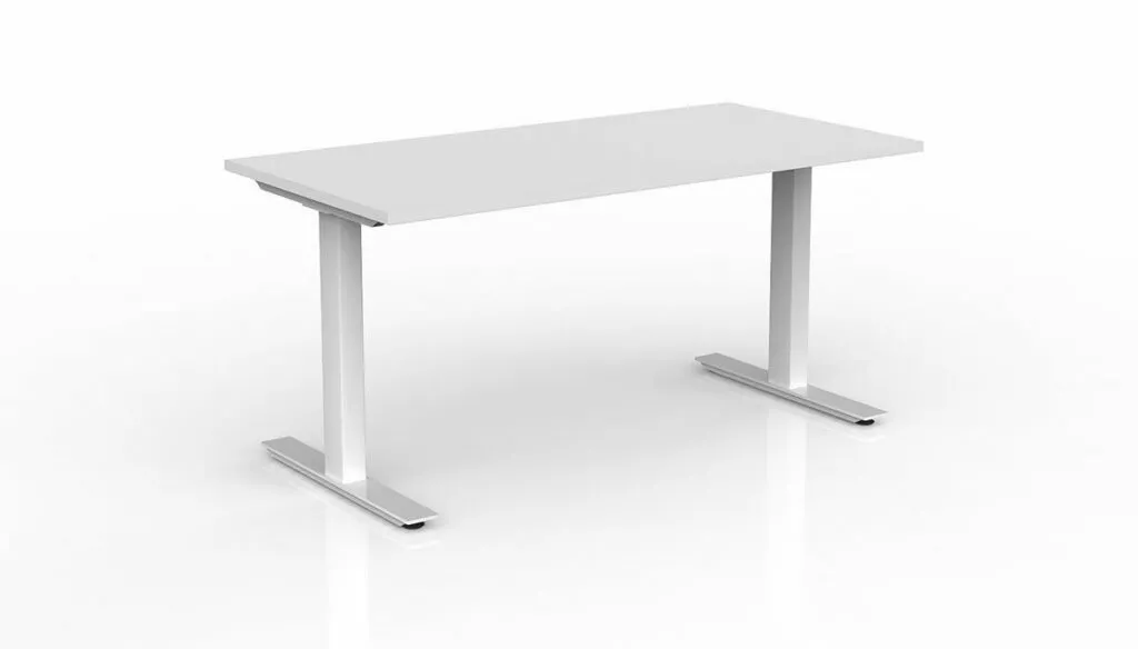 Agile individual layout with worktop of 1200 – 1800mm x 600 – 800mm. 25mm Studio White worktop with ABS edge. White or black powdercoated frame.