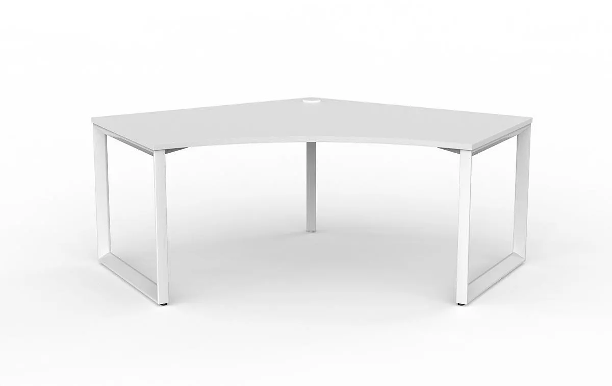 Anvil 120 degree workstation with worktop size of 1200mm/600mm x 1200mm/600mm. White or black powdercoated 50mm x 50mm x 50mm triangle frame, 50mm x 25mm rails . 25mm Studio White worktop with ABS edge.