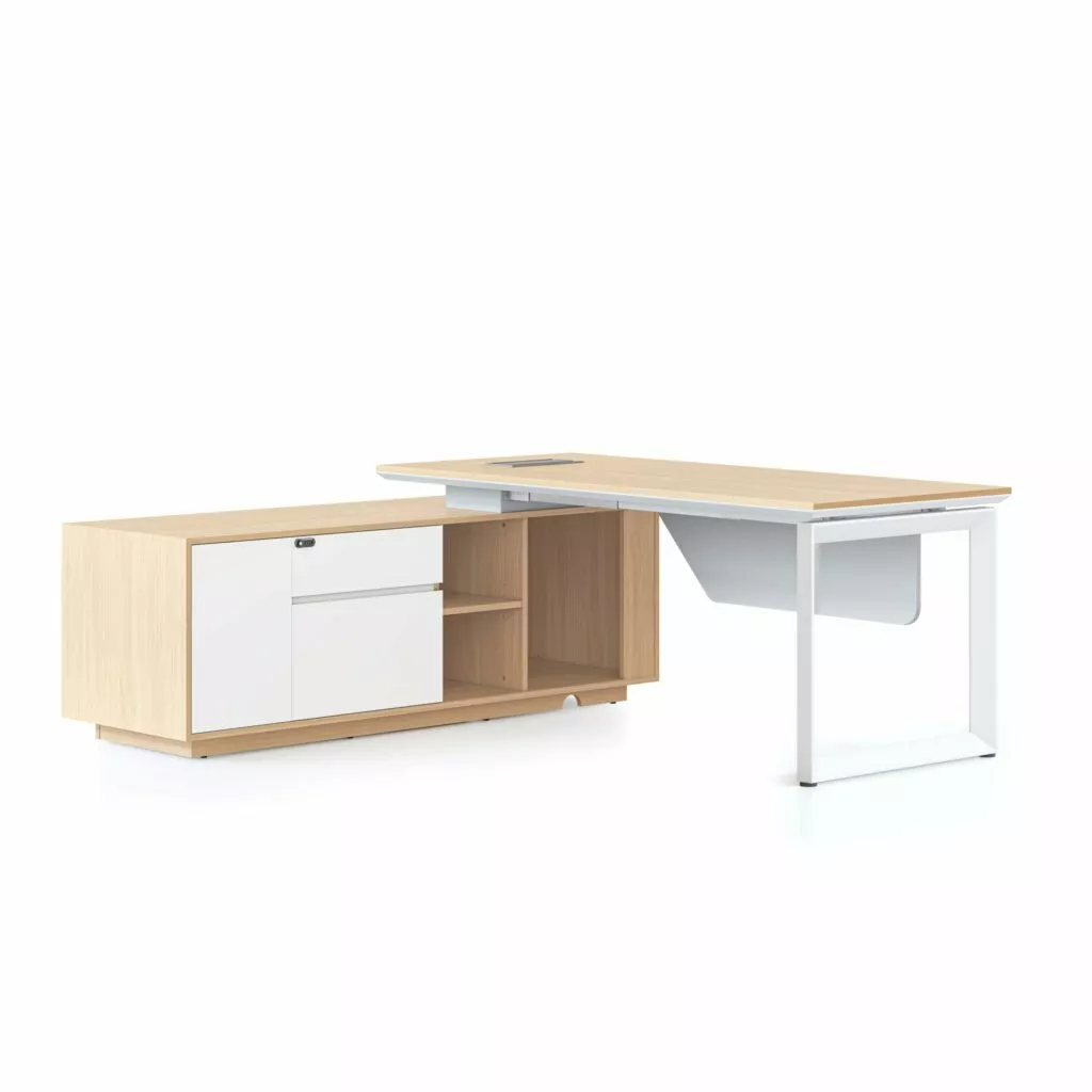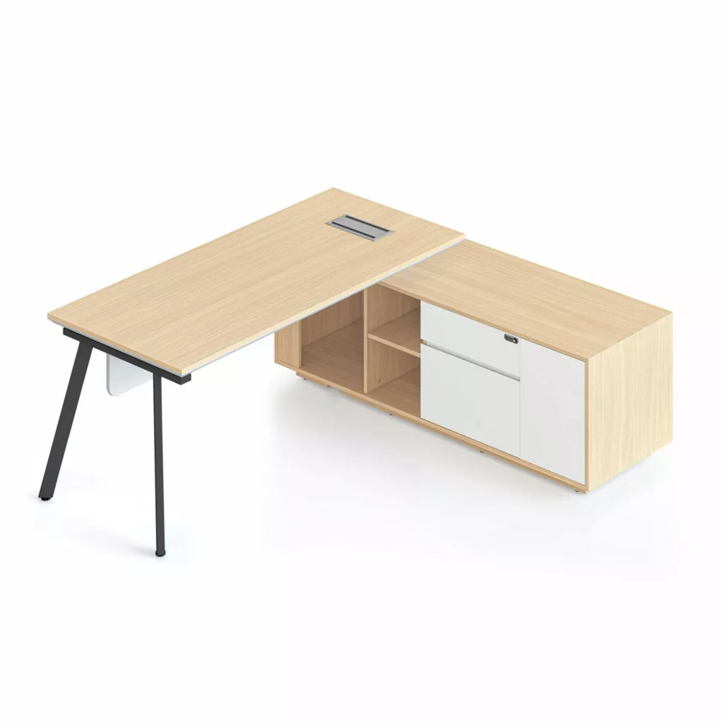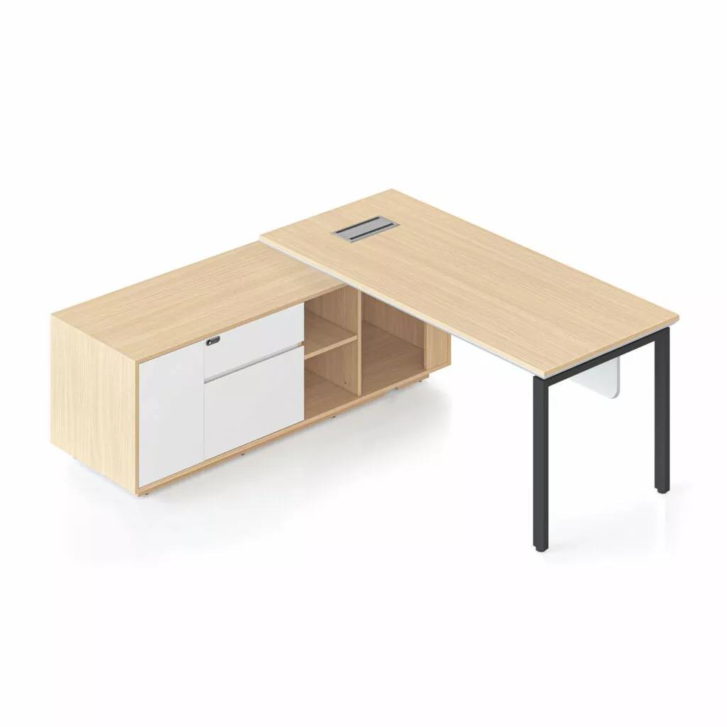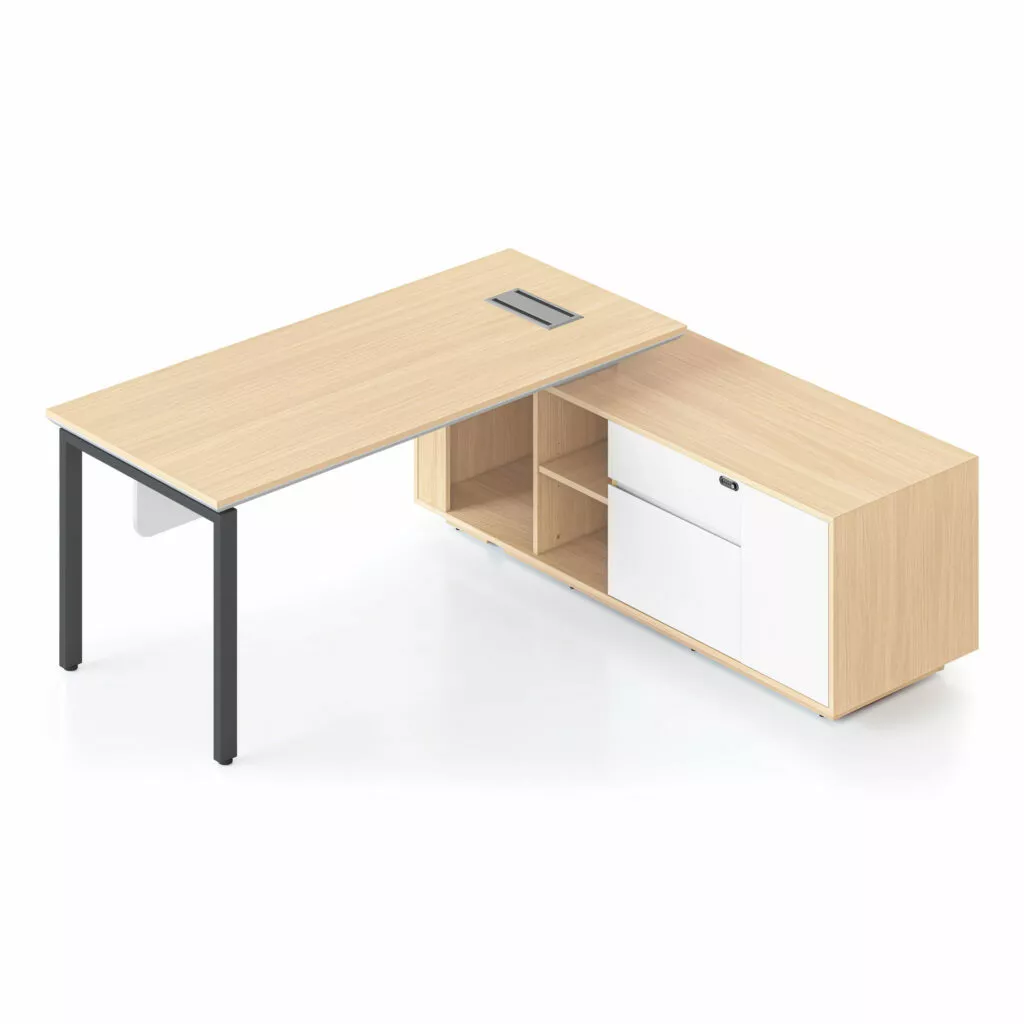 This substantial desk and side cabinet combination offers generous space and smart organisation solutions. Customize your setup with left or right hand configurations, choice of leg style and color, and integrated cable management. Lockable drawers and cupboards secure your important items, making this desk as practical as it is impressive.