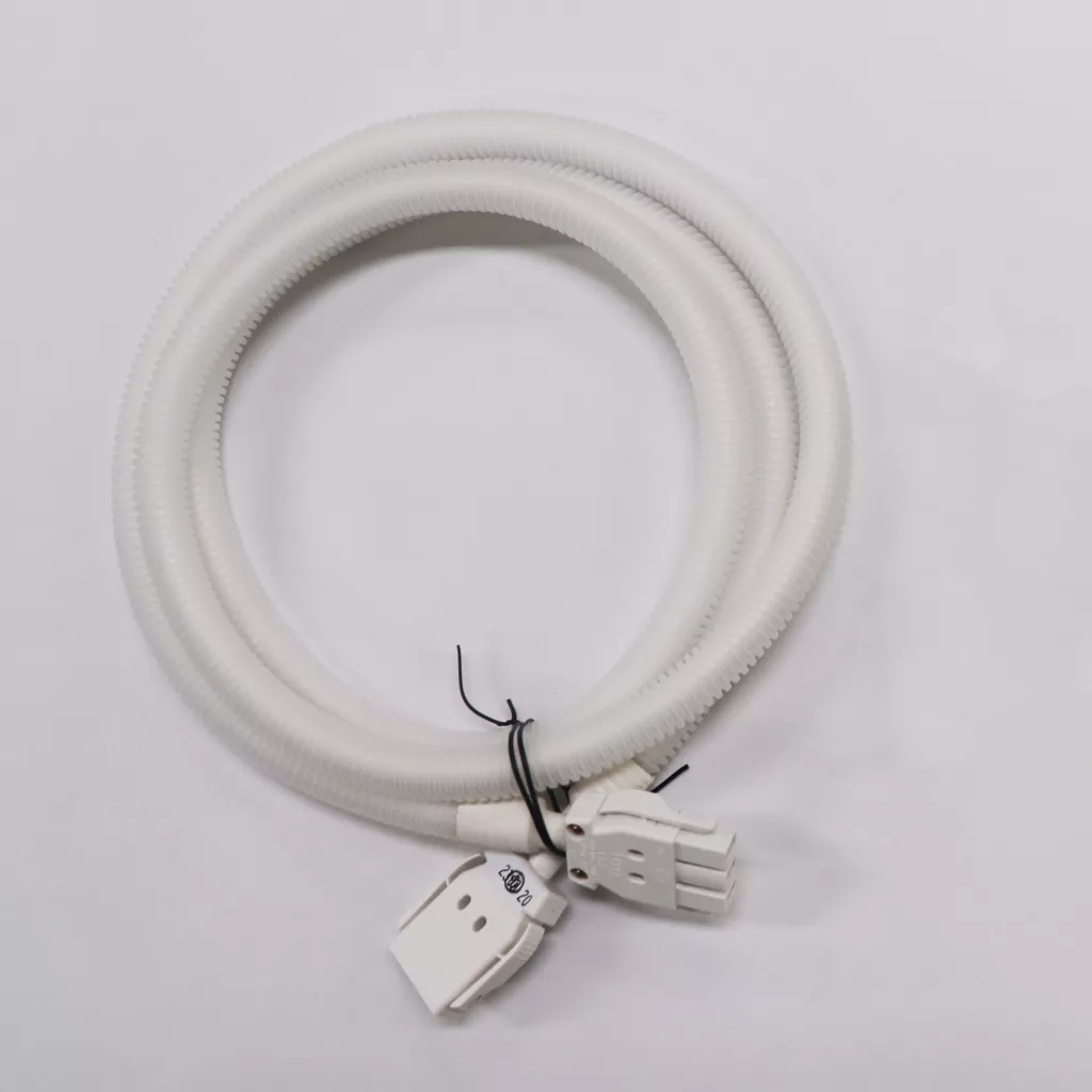 Interconnecting lead wrapped in flex plastic conduit with heat shrunk boots. Connect wall and ceiling starters with workstations or connect power between workstations.