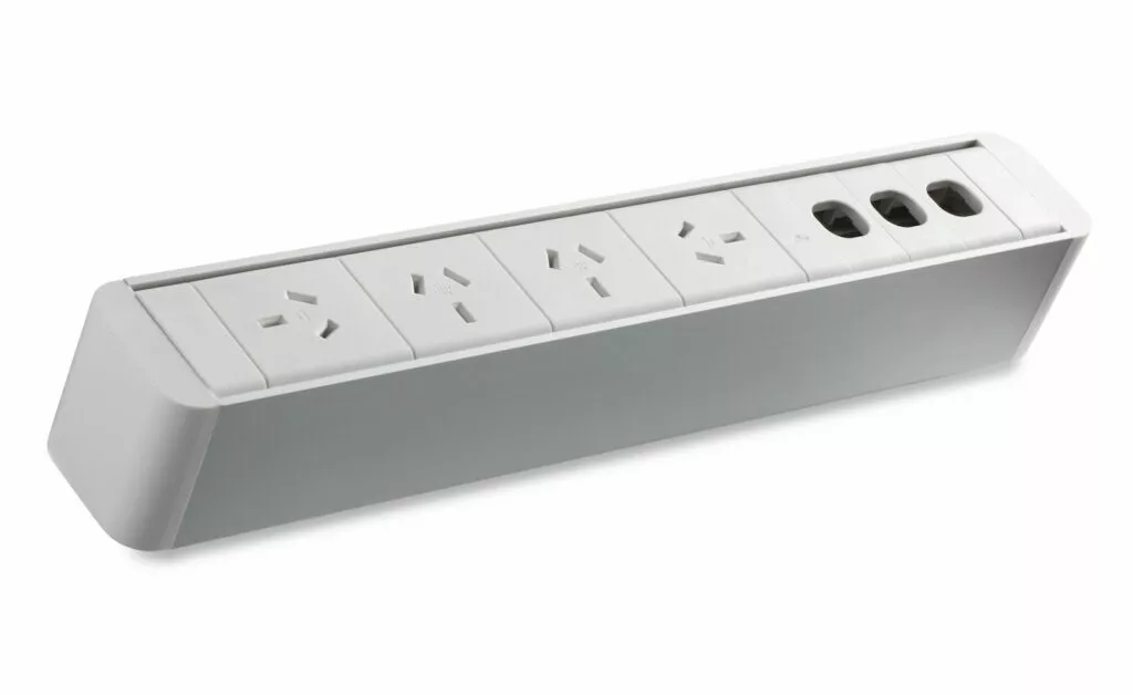 The Zeus above desk power rail comes in multiple colours and connection inputs, perfect for workstation, executive office and meeting rooms.