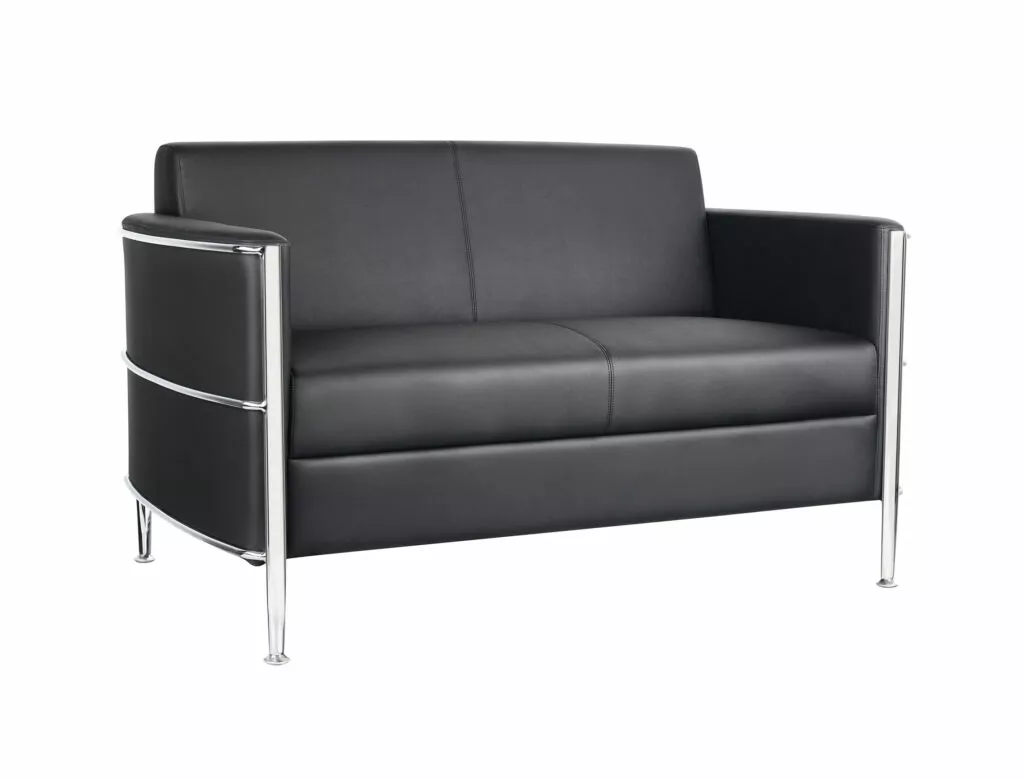 The Eclipse Lounge Range offers a contemporary seating solution with a chrome wrap-around frame and black PU leather upholstery. Designed for comfort and durability, it features adjustable feet for leveling on uneven surfaces and is tested to meet rigorous safety standards. Backed by a 3-year warranty for peace of mind.