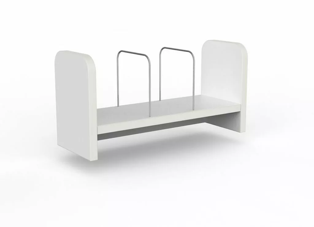 Desktop shelf for EkoSystem desks and tables. Available in Studio White or Charcoal.