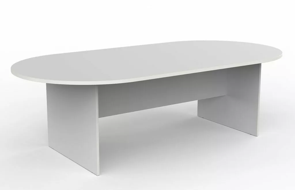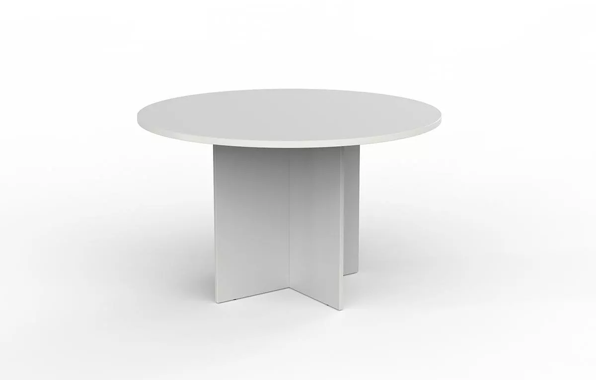 EkoSystem Meeting Table with worktop size of 900mm Round. White 25mm Worktop, White Melamine base.