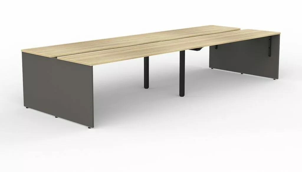 EkoSystem can be used to complement any collaborative workspace, with a simple, understated design that seamlessly integrates with other furniture ranges. Slab ends on double sided desk settings retain the ability to level across long lengths, while desktop height credenzas offer a matching, flush finish. Cable management options keep work areas tidy, and screen options add a touch of privacy when required.