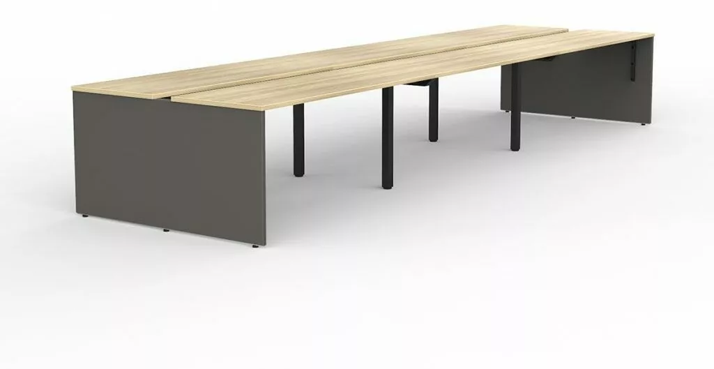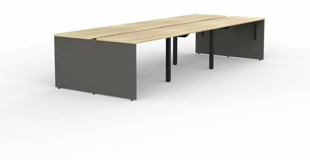 EkoSystem can be used to complement any collaborative workspace, with a simple, understated design that seamlessly integrates with other furniture ranges. Slab ends on double sided desk settings retain the ability to level across long lengths, while desktop height credenzas offer a matching, flush finish. Cable management options keep work areas tidy, and screen options add a touch of privacy when required.