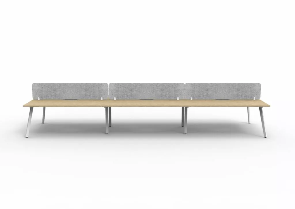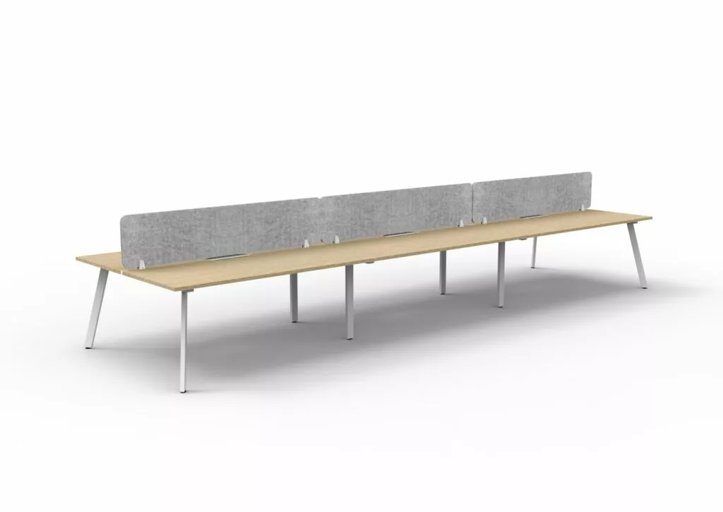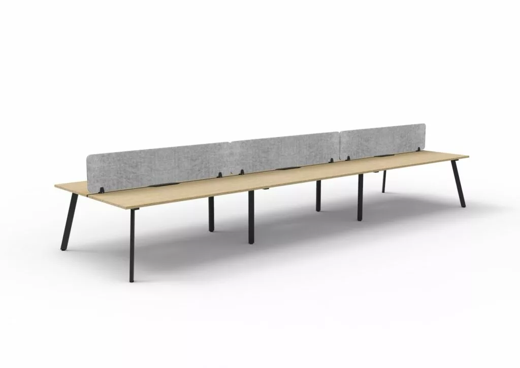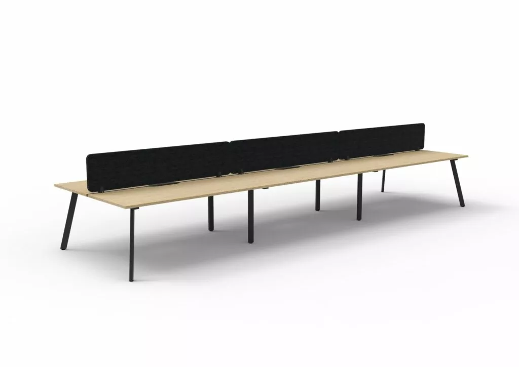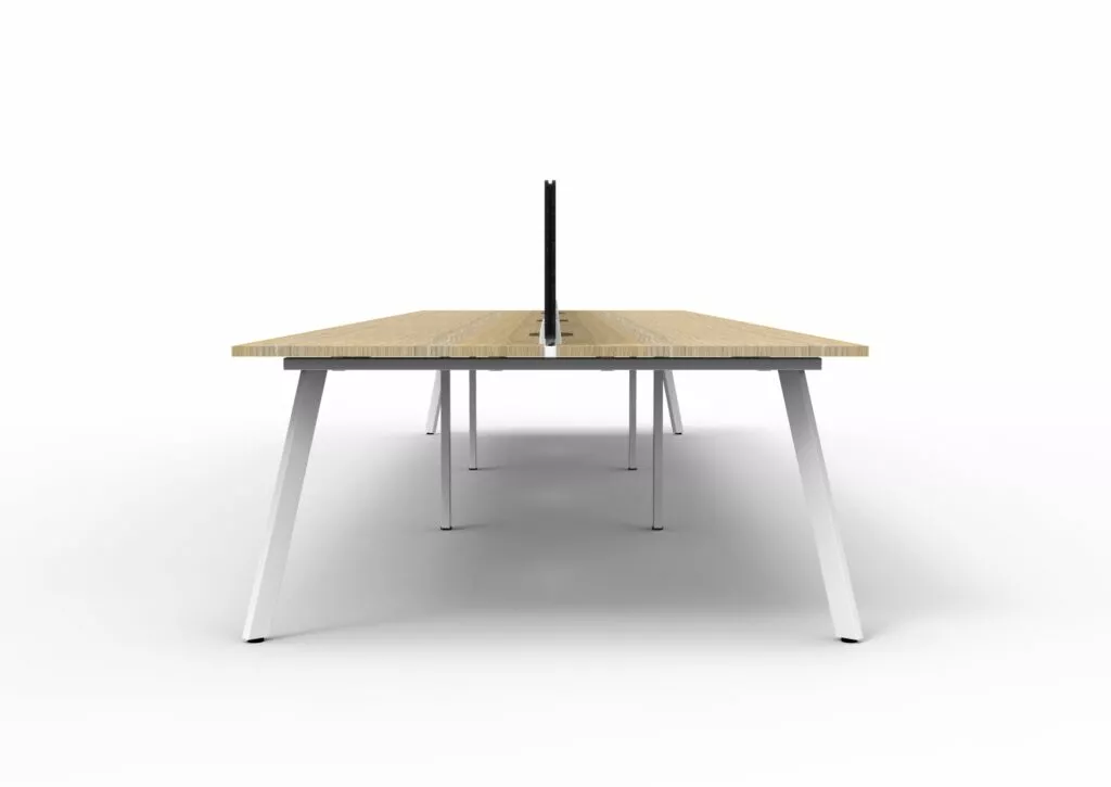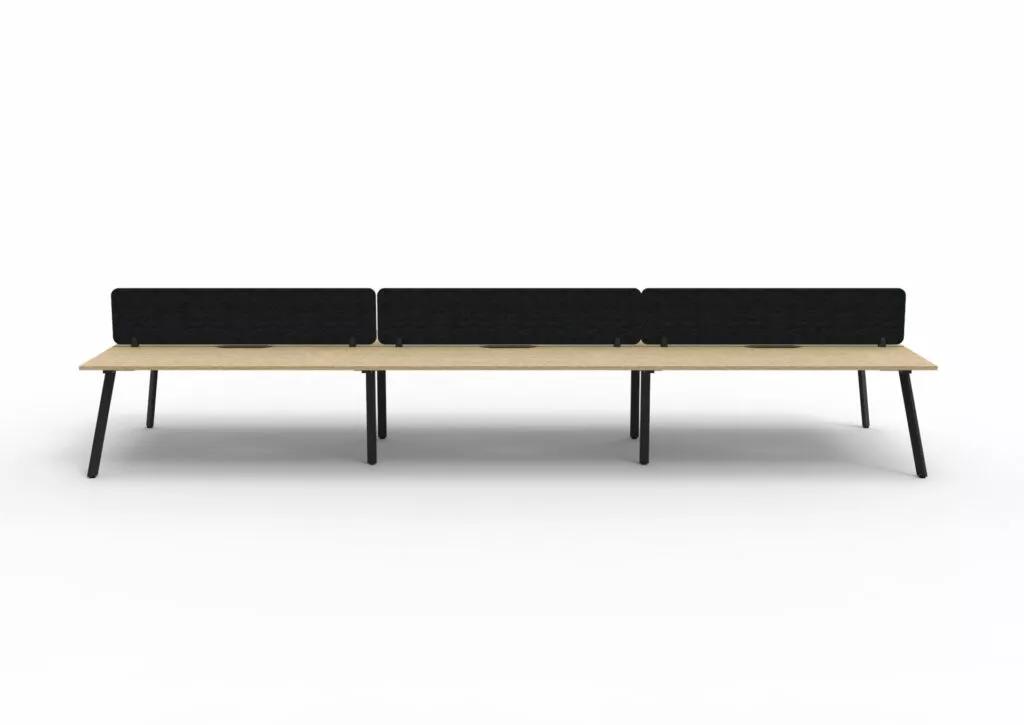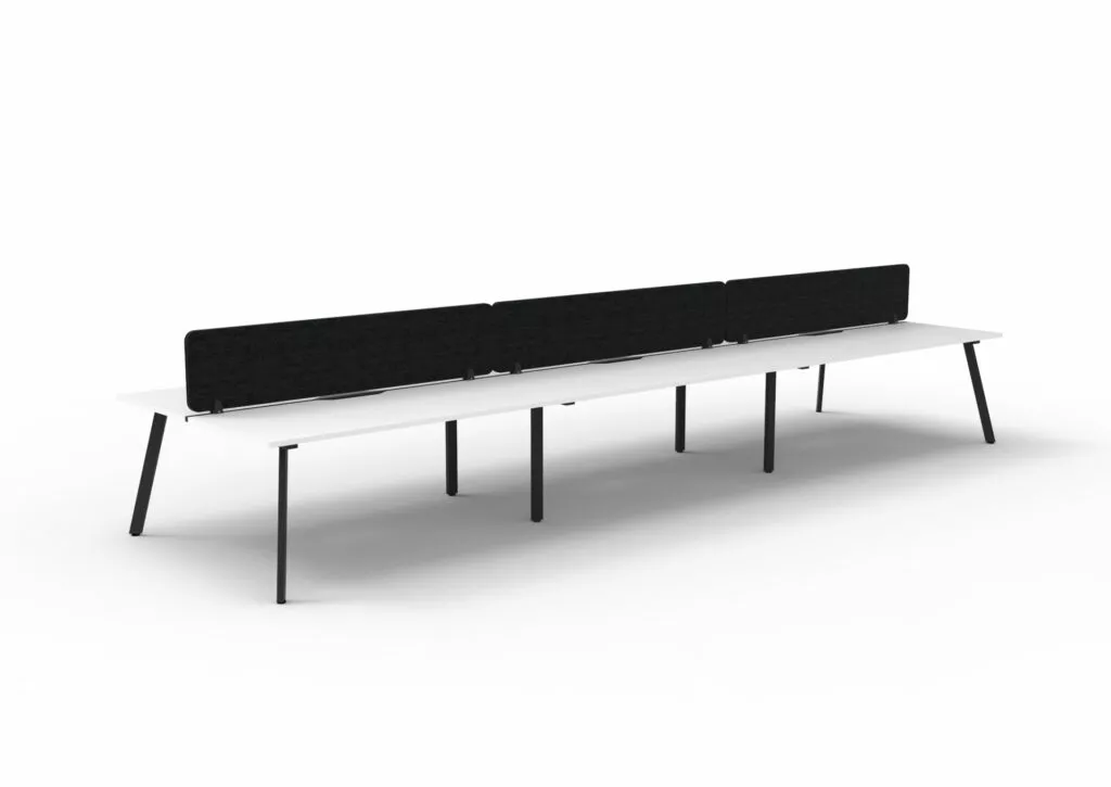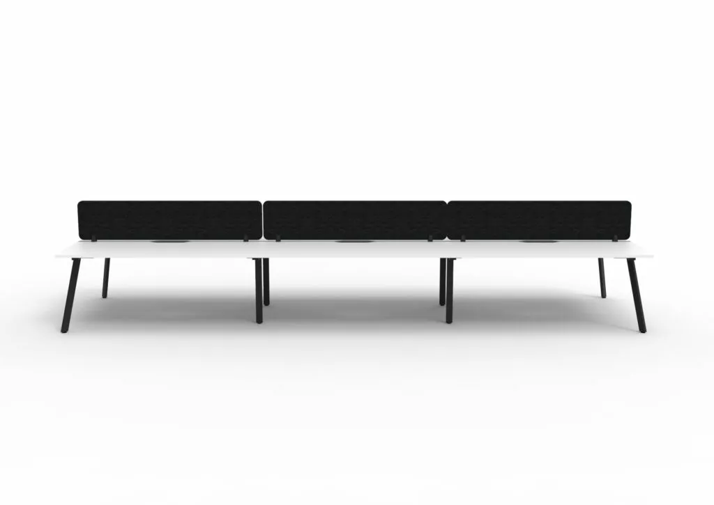 Maximise space and create an efficientworking environment with Deluxe Rapid Infinity. The 750mm deep Enviroboard tops, with scallop for cable access, and a recessed leg to create full leg access in long runs of workstations. The 60 x 30 profile leg adds a minimalist look to each workstation run, and the matching dividing screen adds privacy and