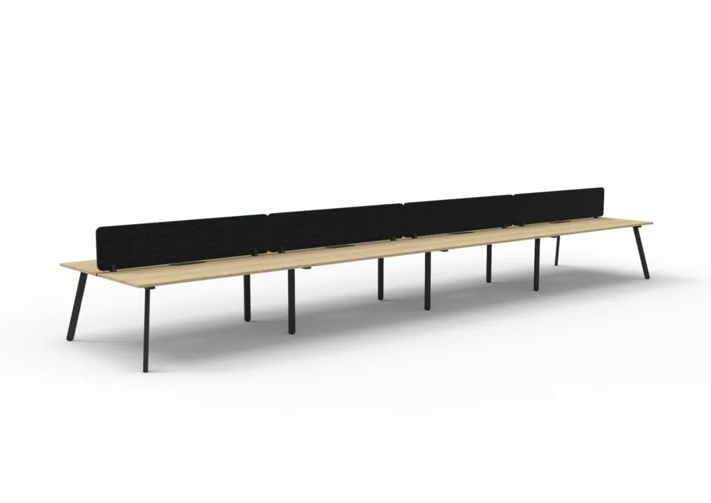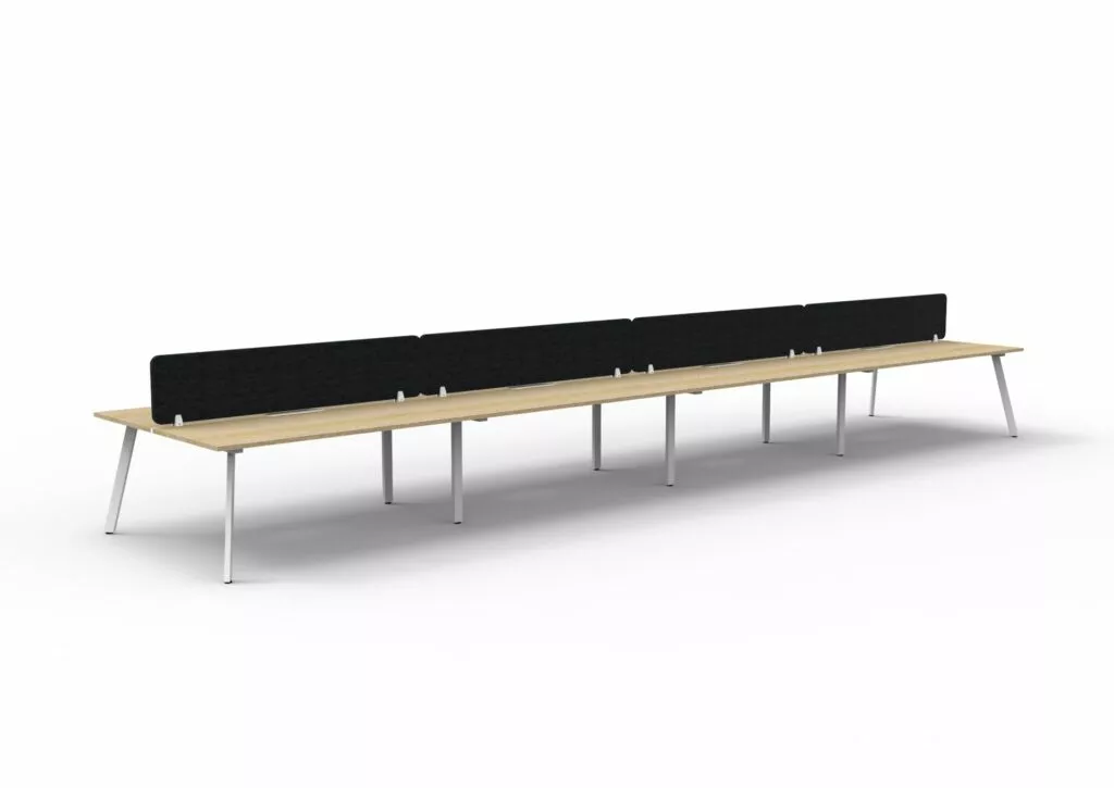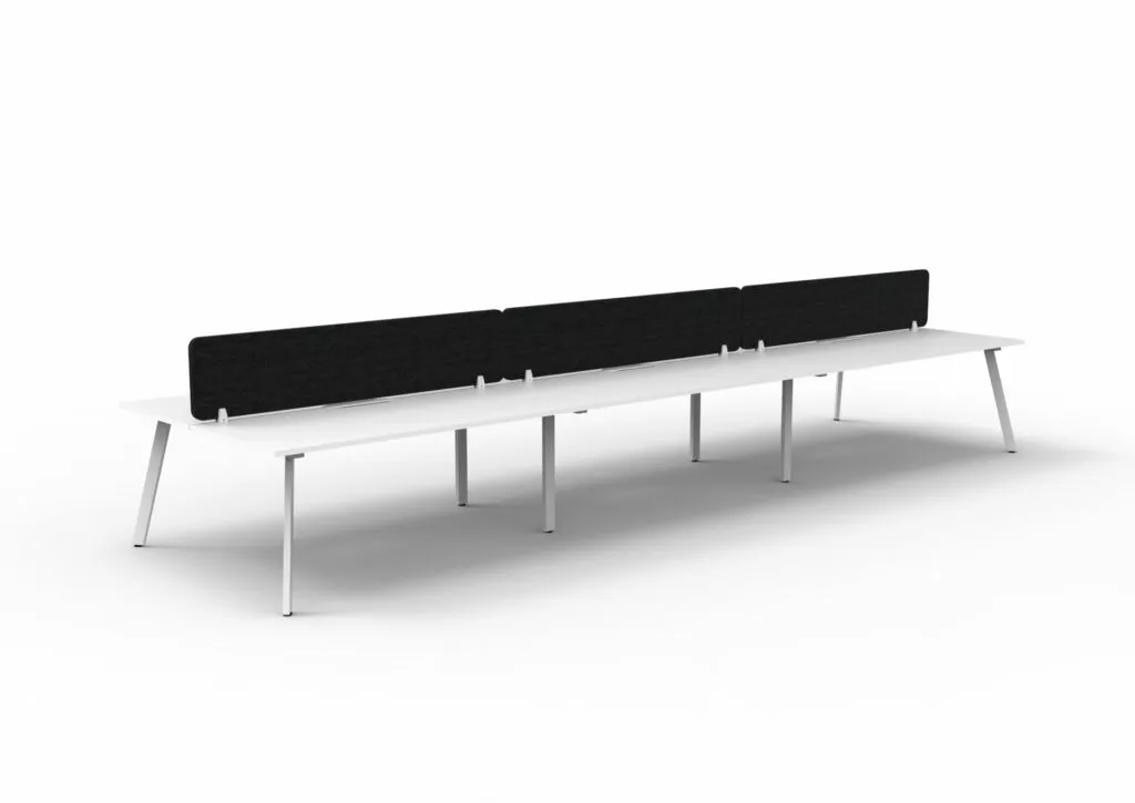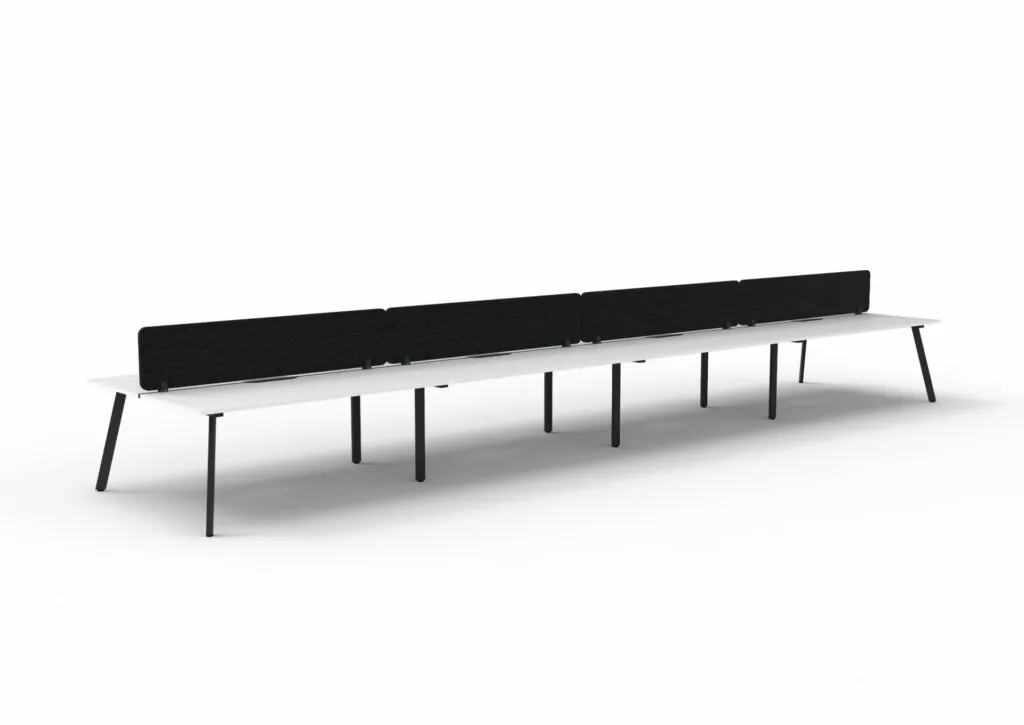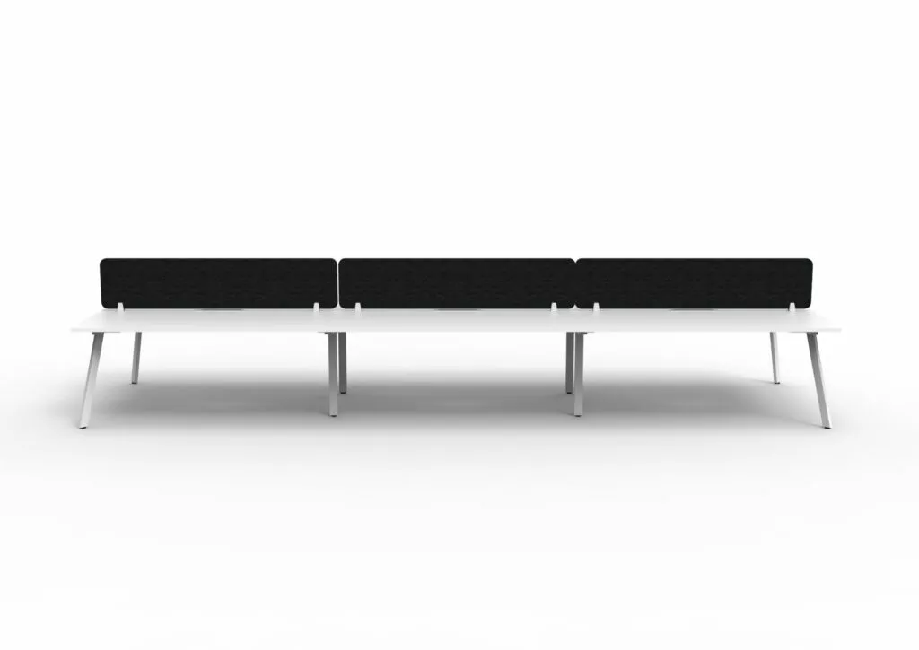 Maximise space and create an efficientworking environment with Deluxe Rapid Infinity. The 750mm deep Enviroboard tops, with scallop for cable access, and a recessed leg to create full leg access in long runs of workstations. The 60 x 30 profile leg adds a minimalist look to each workstation run, and the matching dividing screen adds privacy and