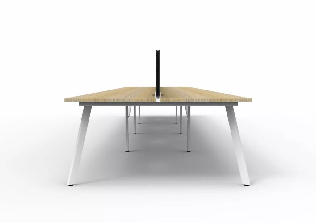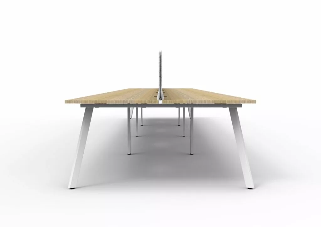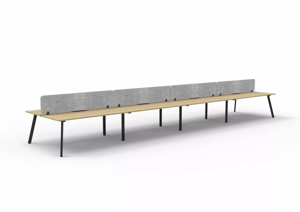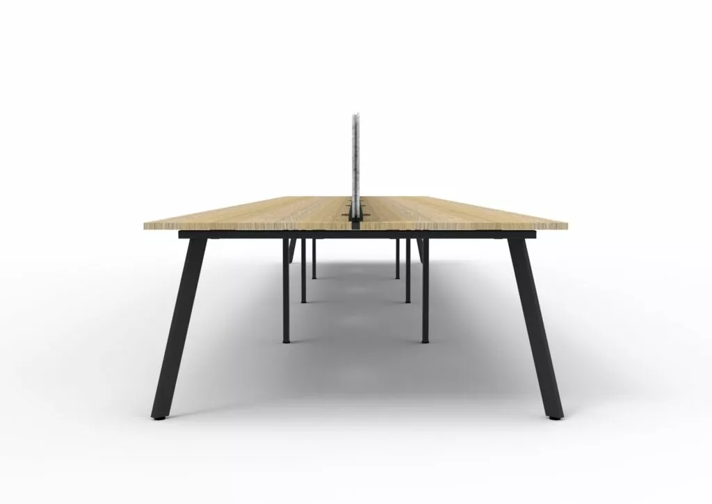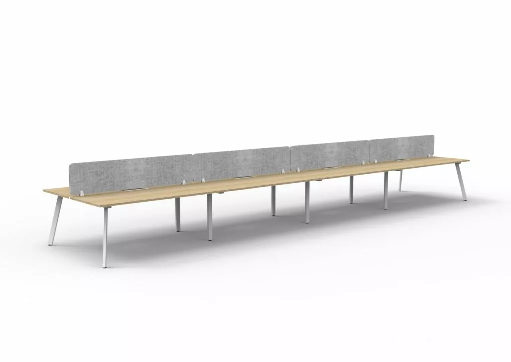 Maximise space and create an efficientworking environment with Deluxe Rapid Infinity. The 750mm deep Enviroboard tops, with scallop for cable access, and a recessed leg to create full leg access in long runs of workstations. The 60 x 30 profile leg adds a minimalist look to each workstation run, and the matching dividing screen adds privacy and
