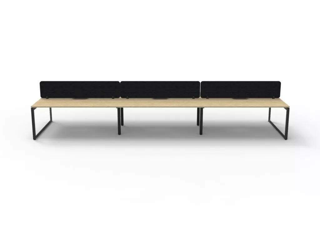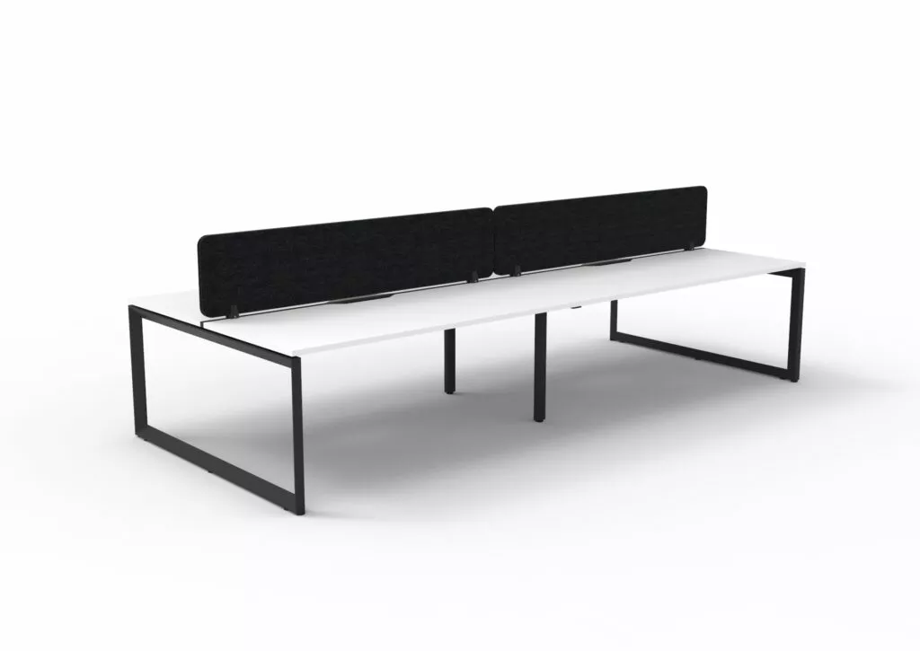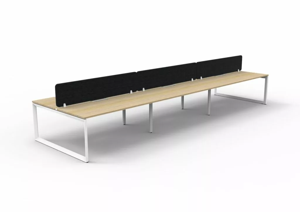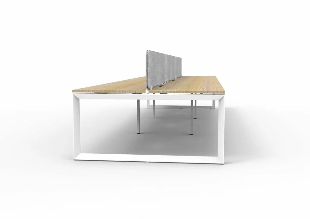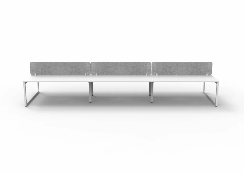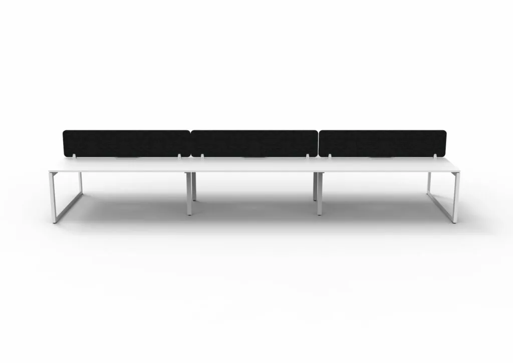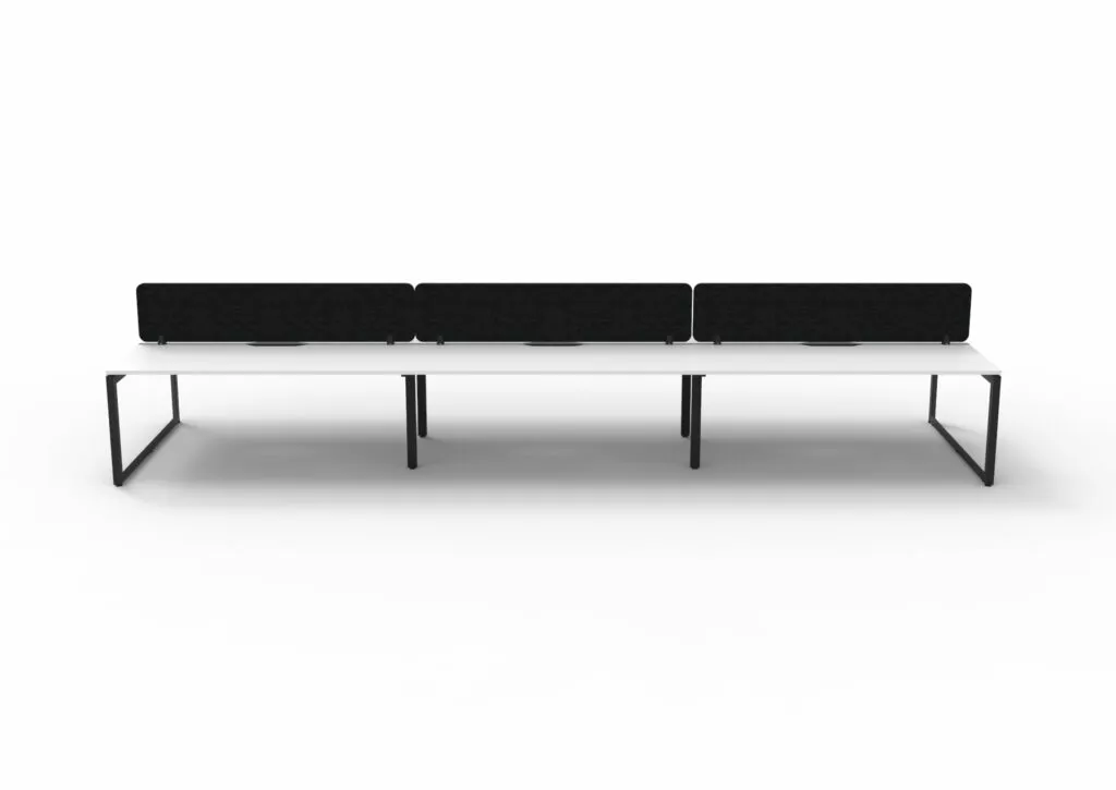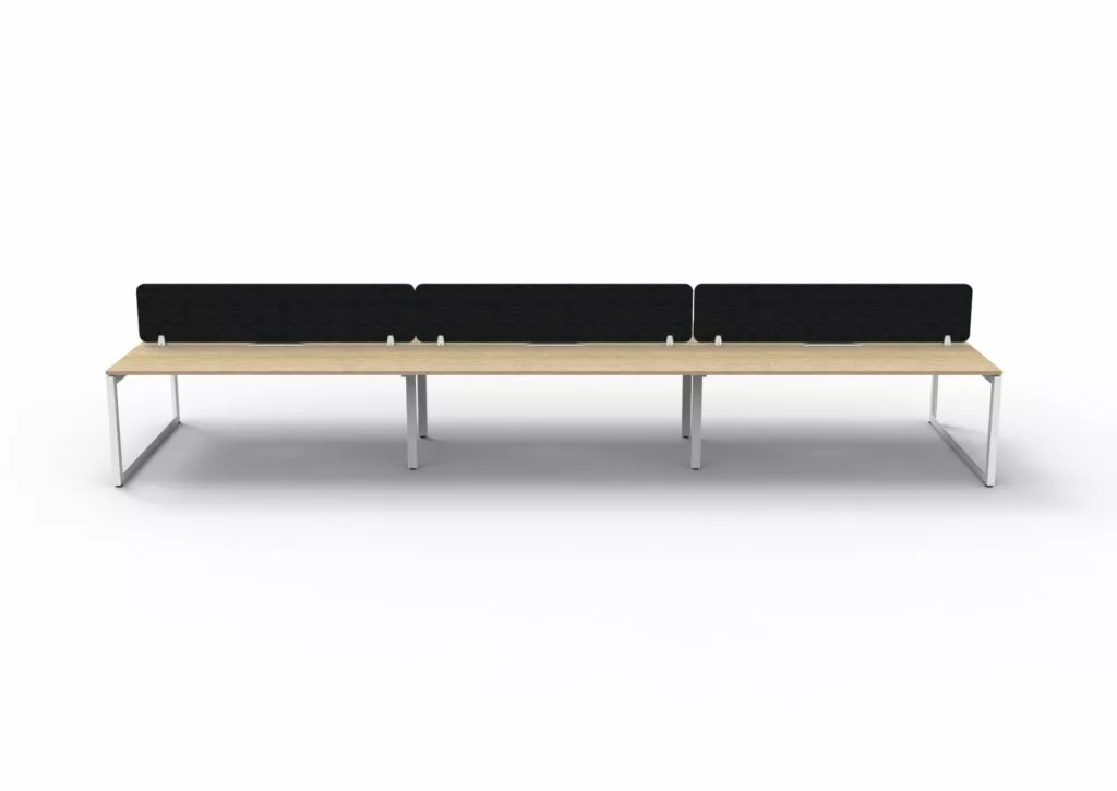 The 60 x 30 Loop legs add a minimalist look to each workstation run, and the matching dividing screen adds privacy and noise reduction to each workstation.