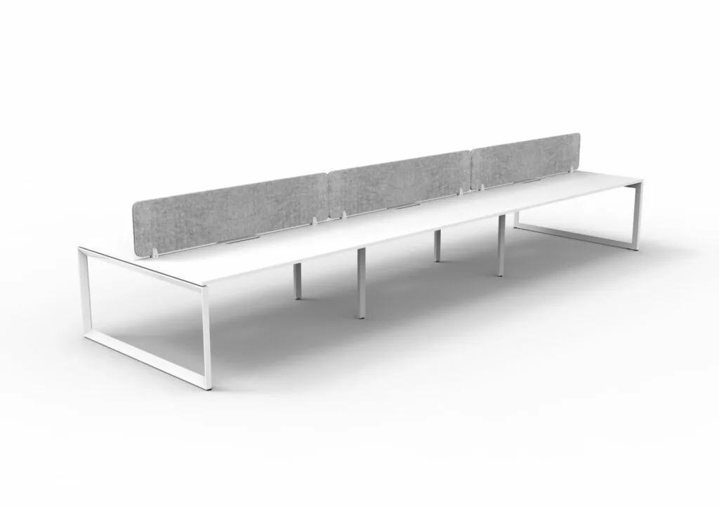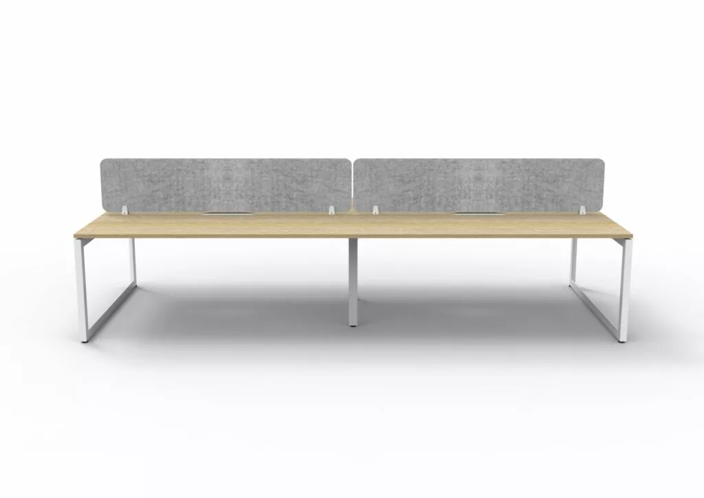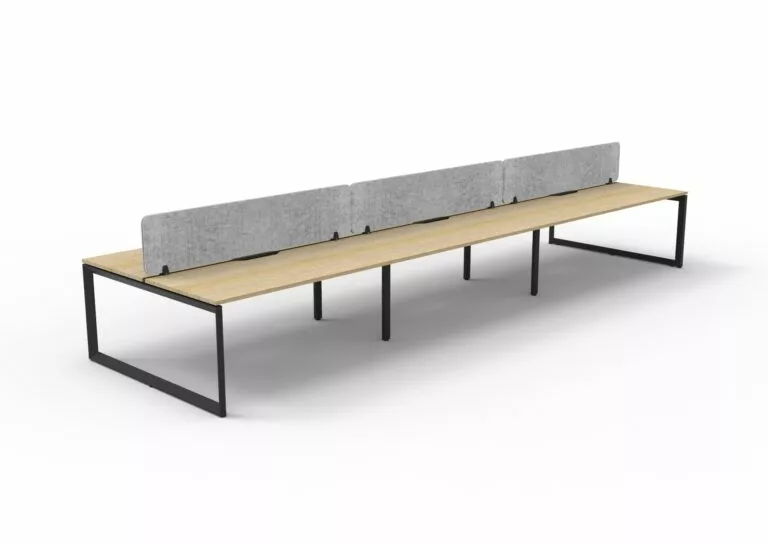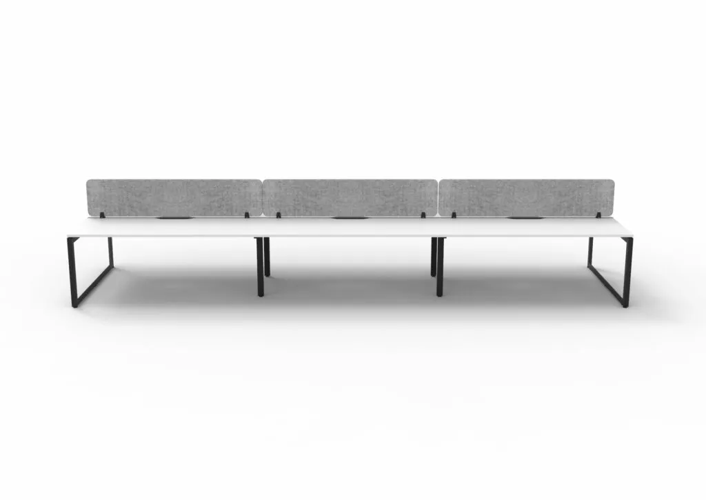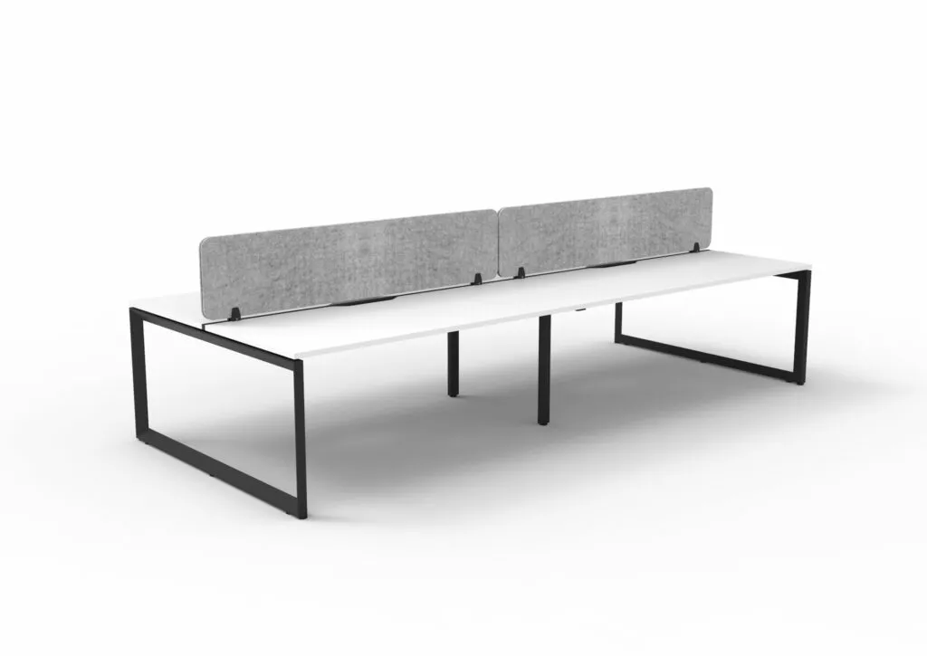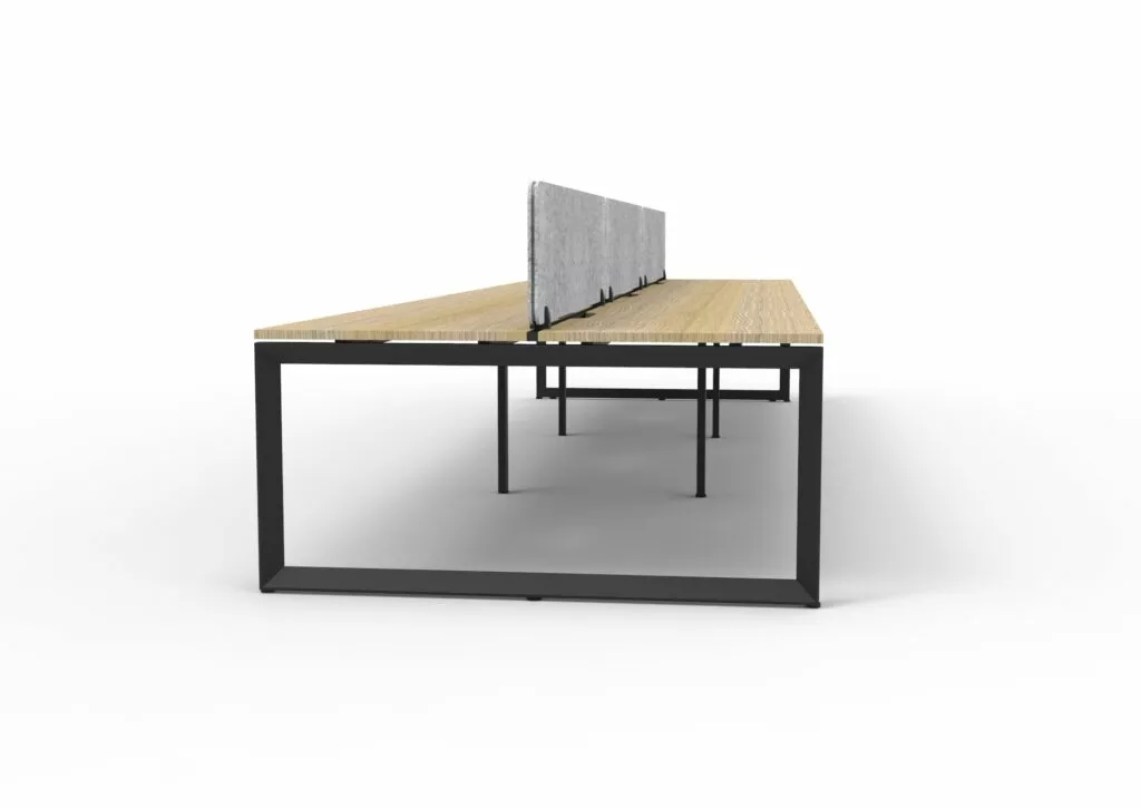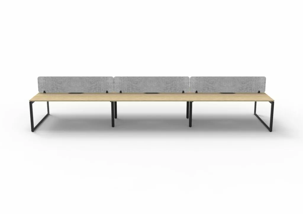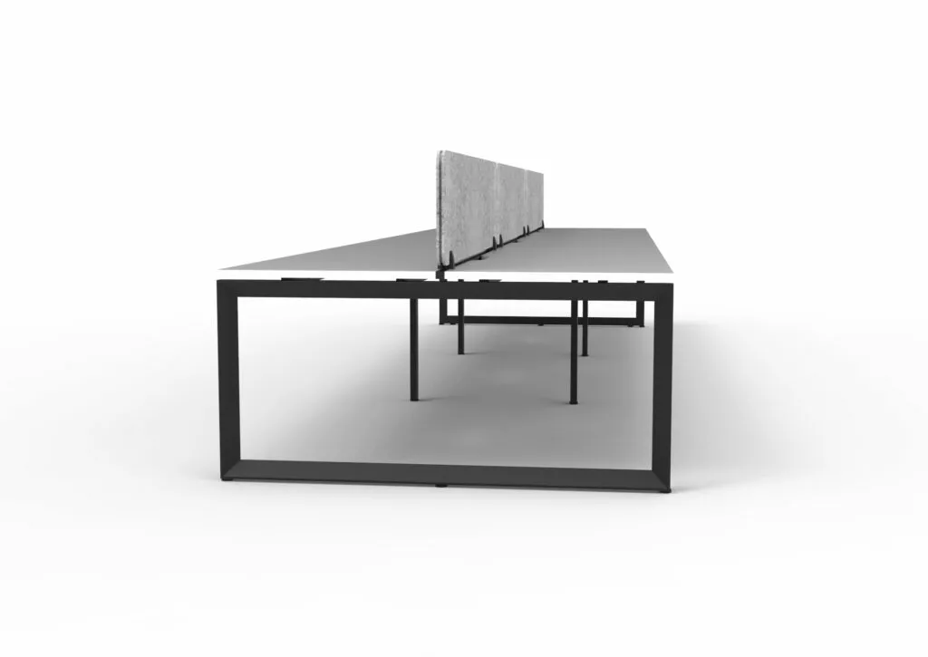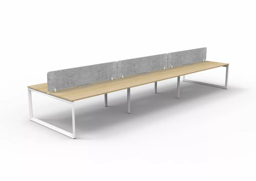 The 60 x 30 Loop legs add a minimalist look to each workstation run, and the matching dividing screen adds privacy and noise reduction to each workstation.