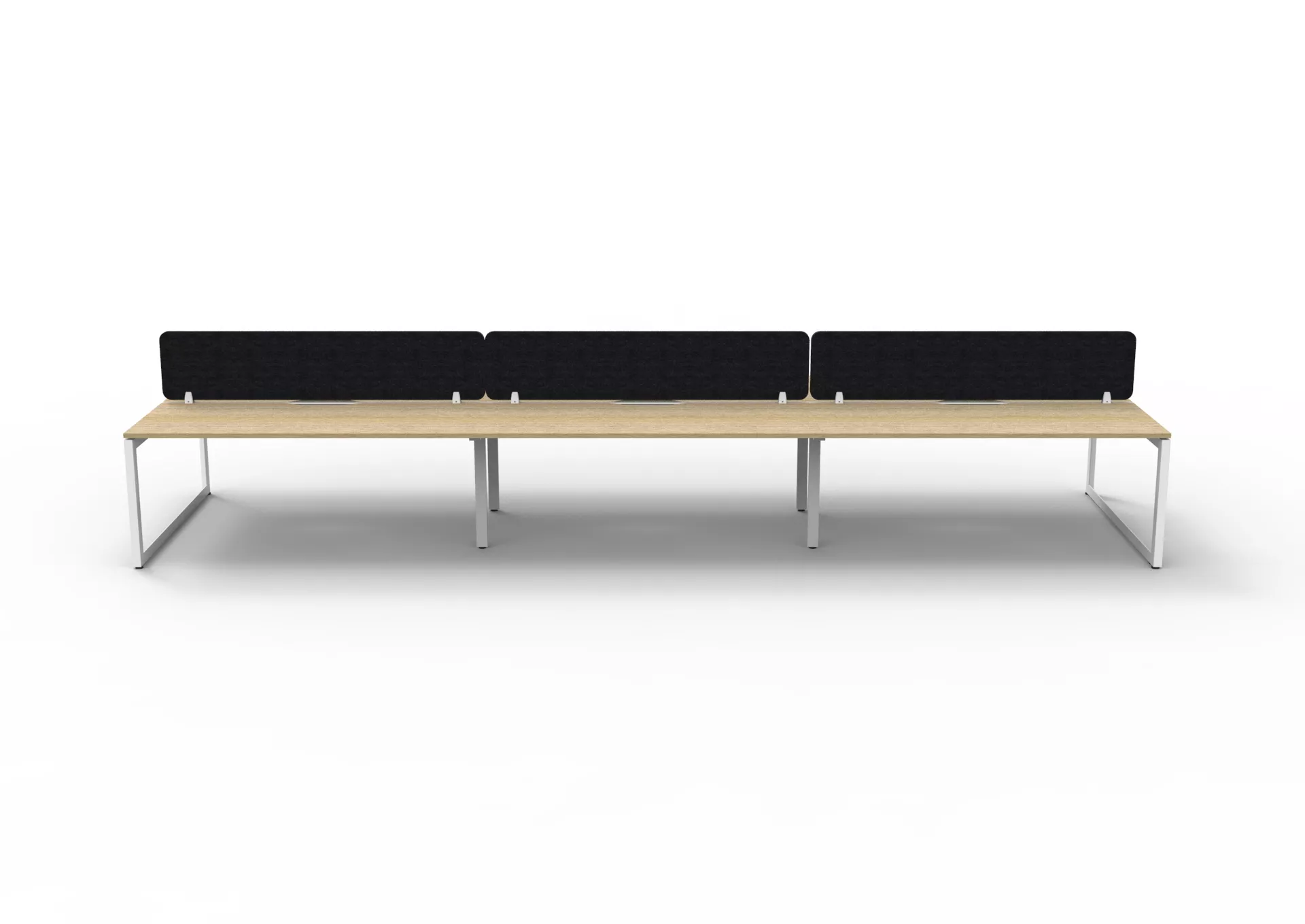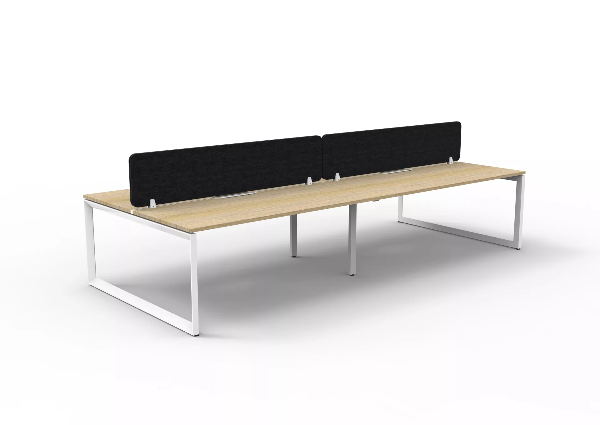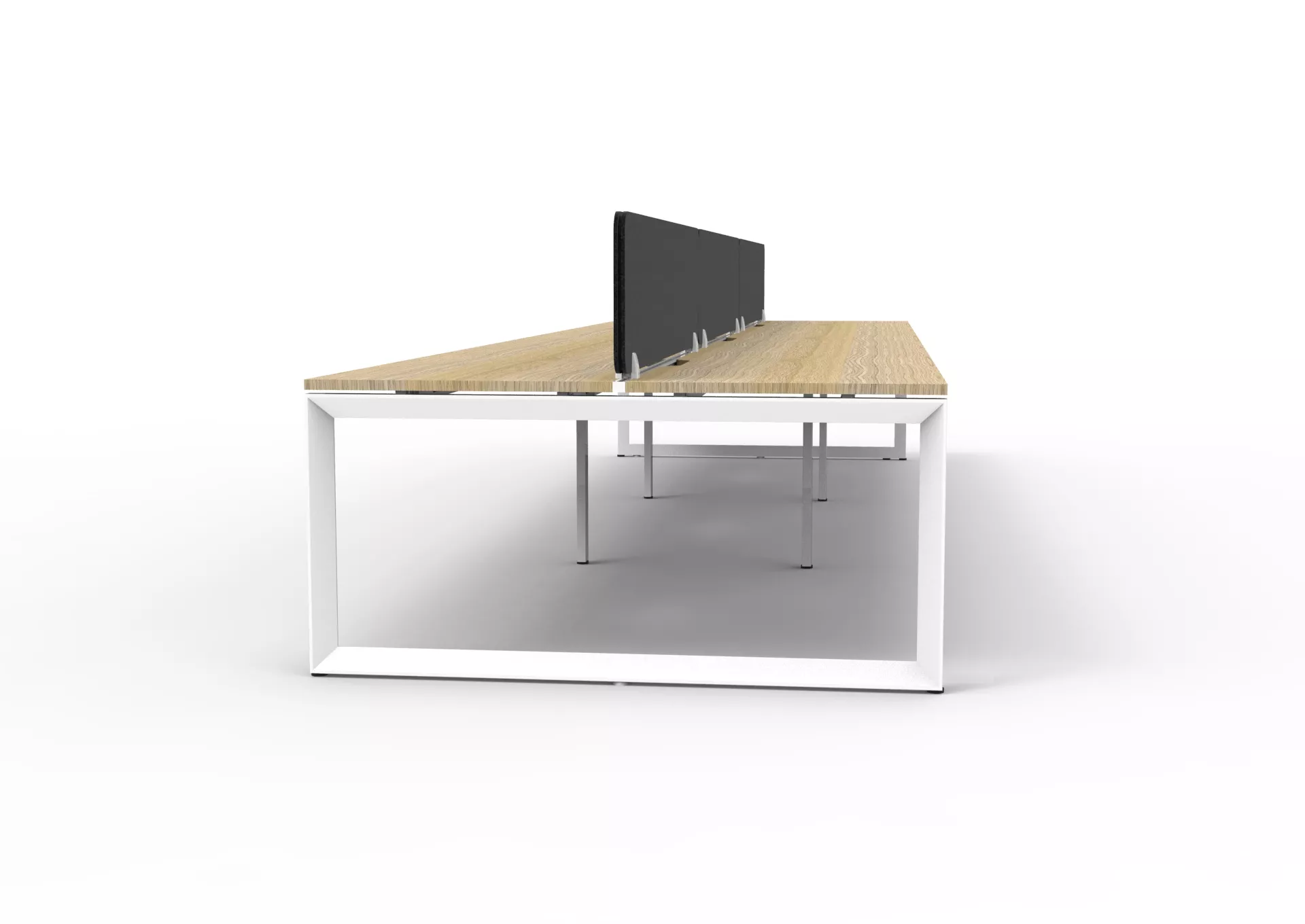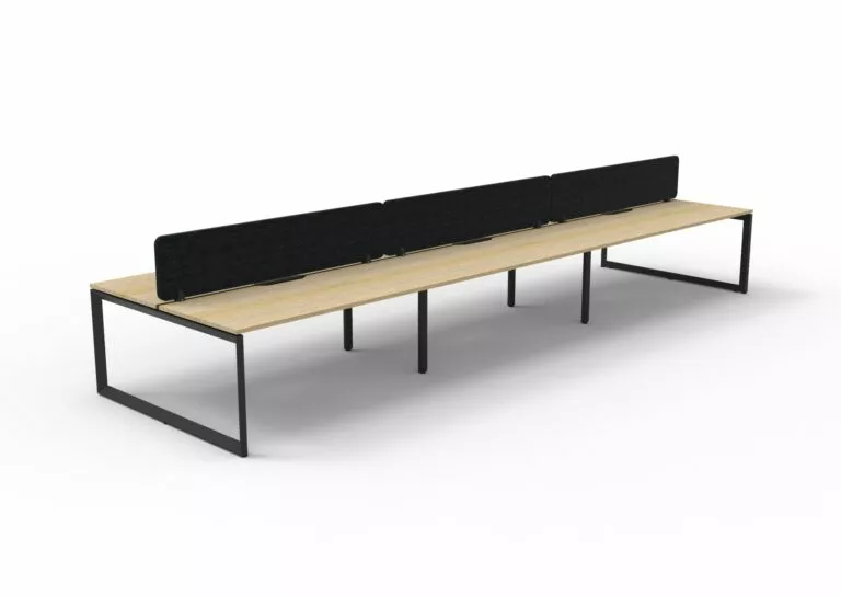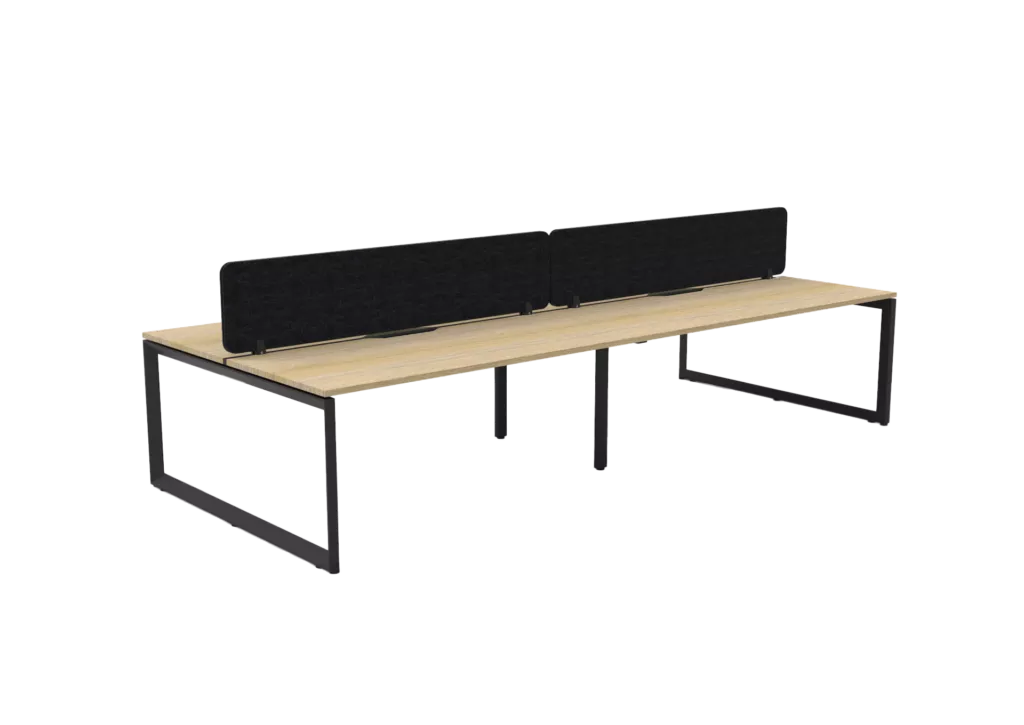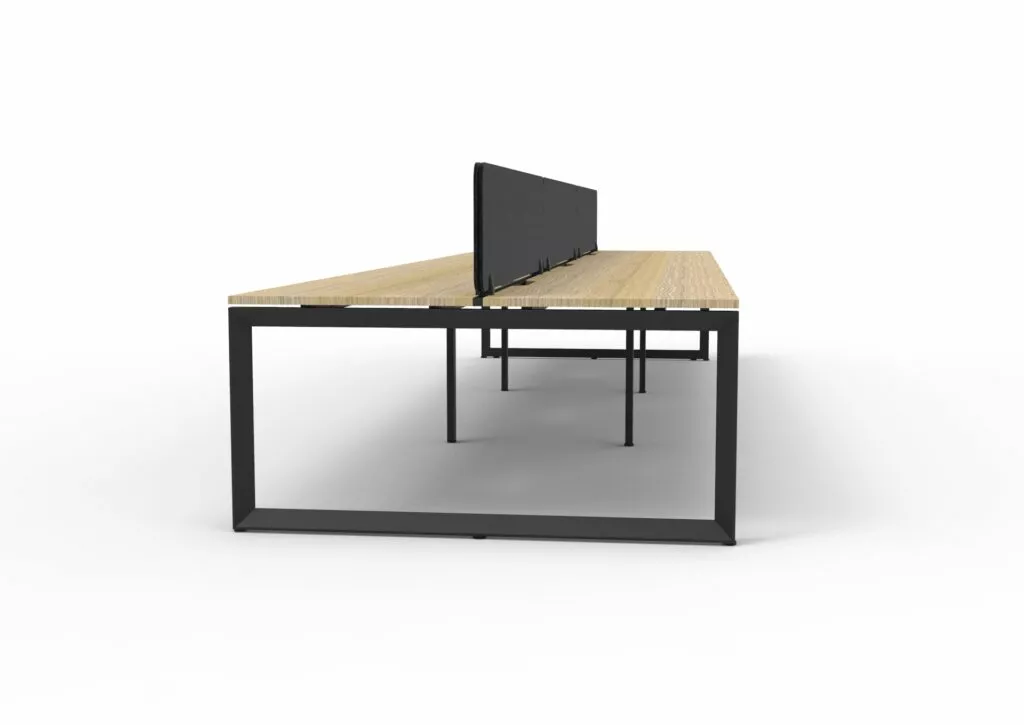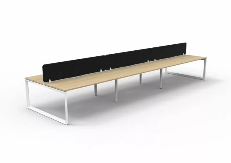 The 60 x 30 Loop legs add a minimalist look to each workstation run, and the matching dividing screen adds privacy and noise reduction to each workstation.
