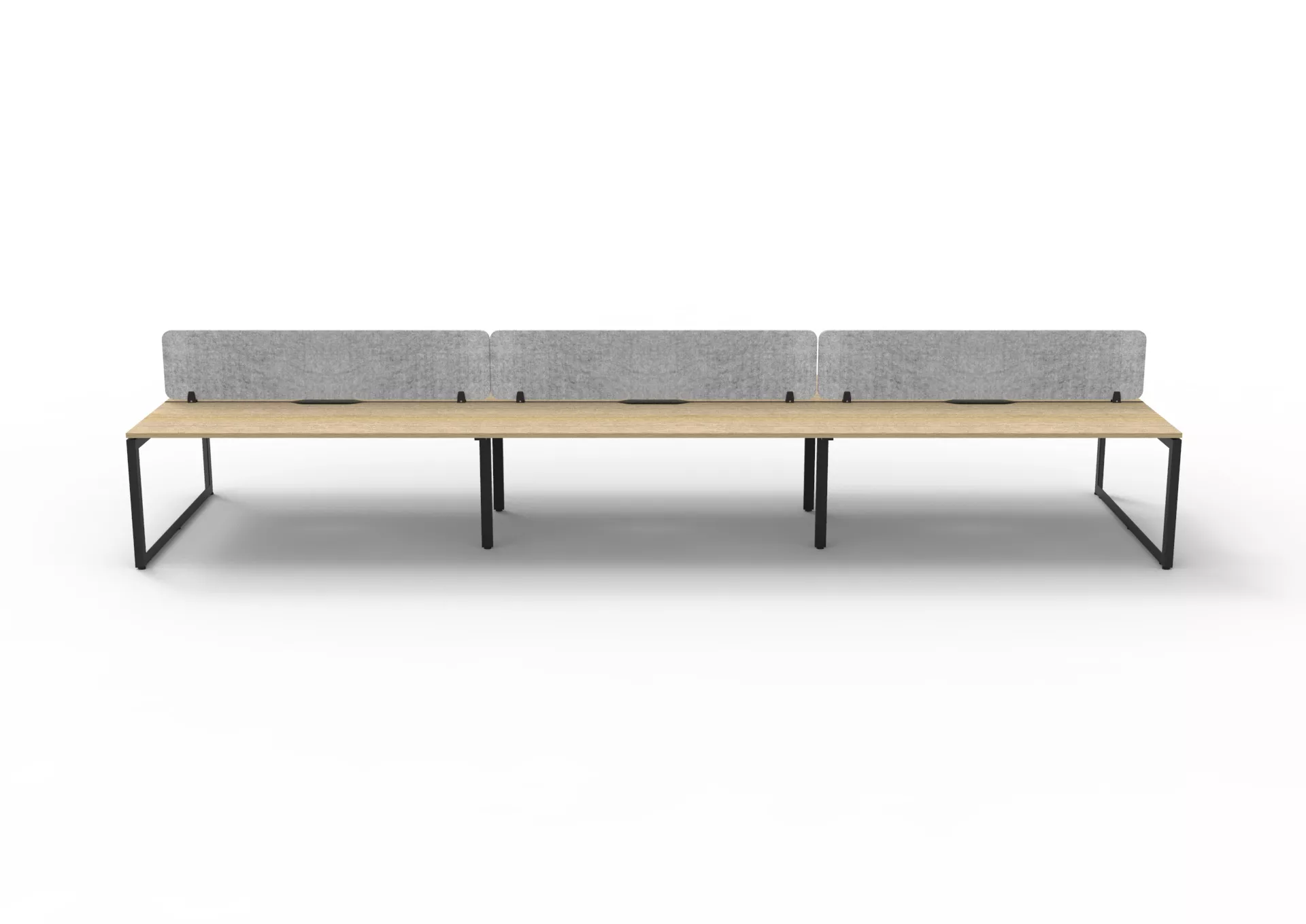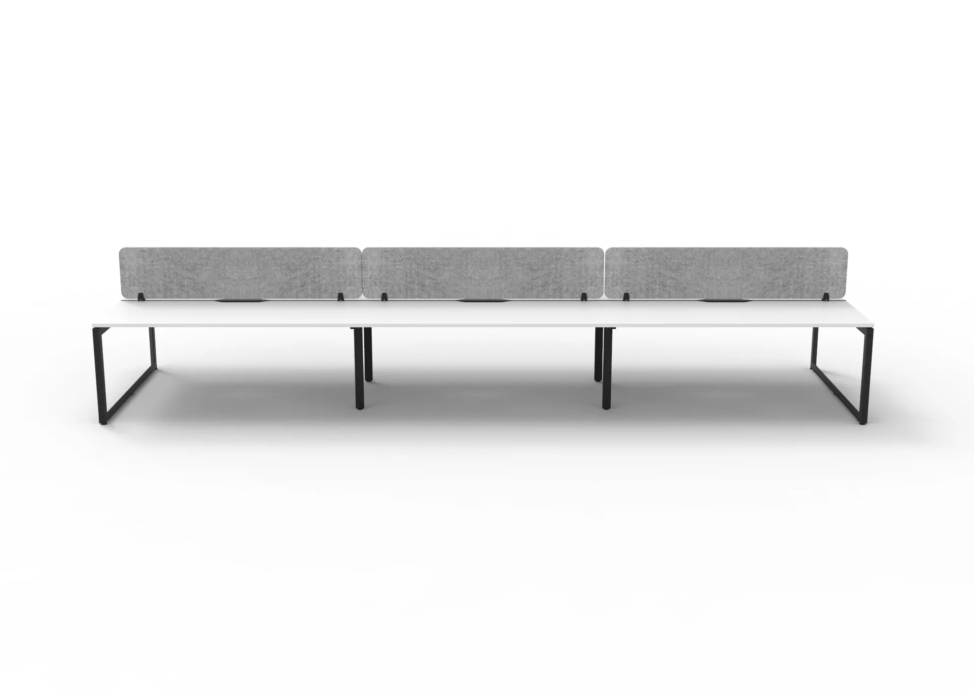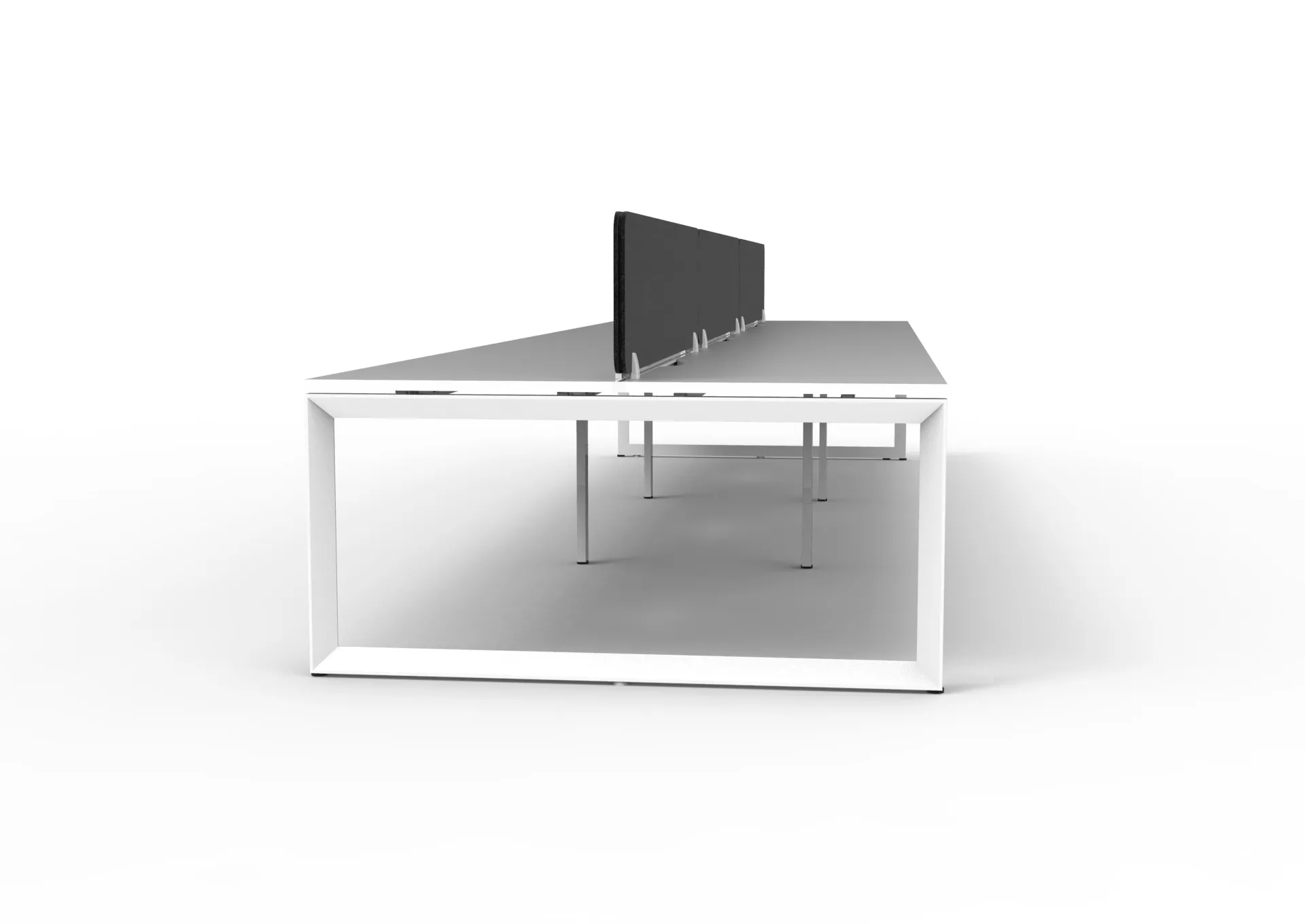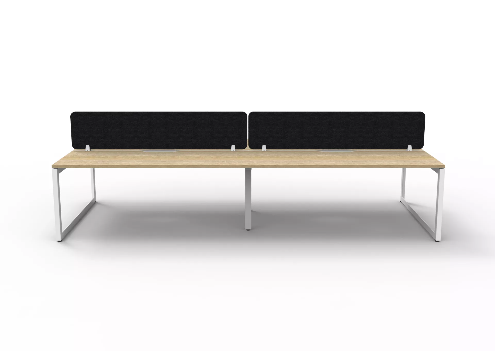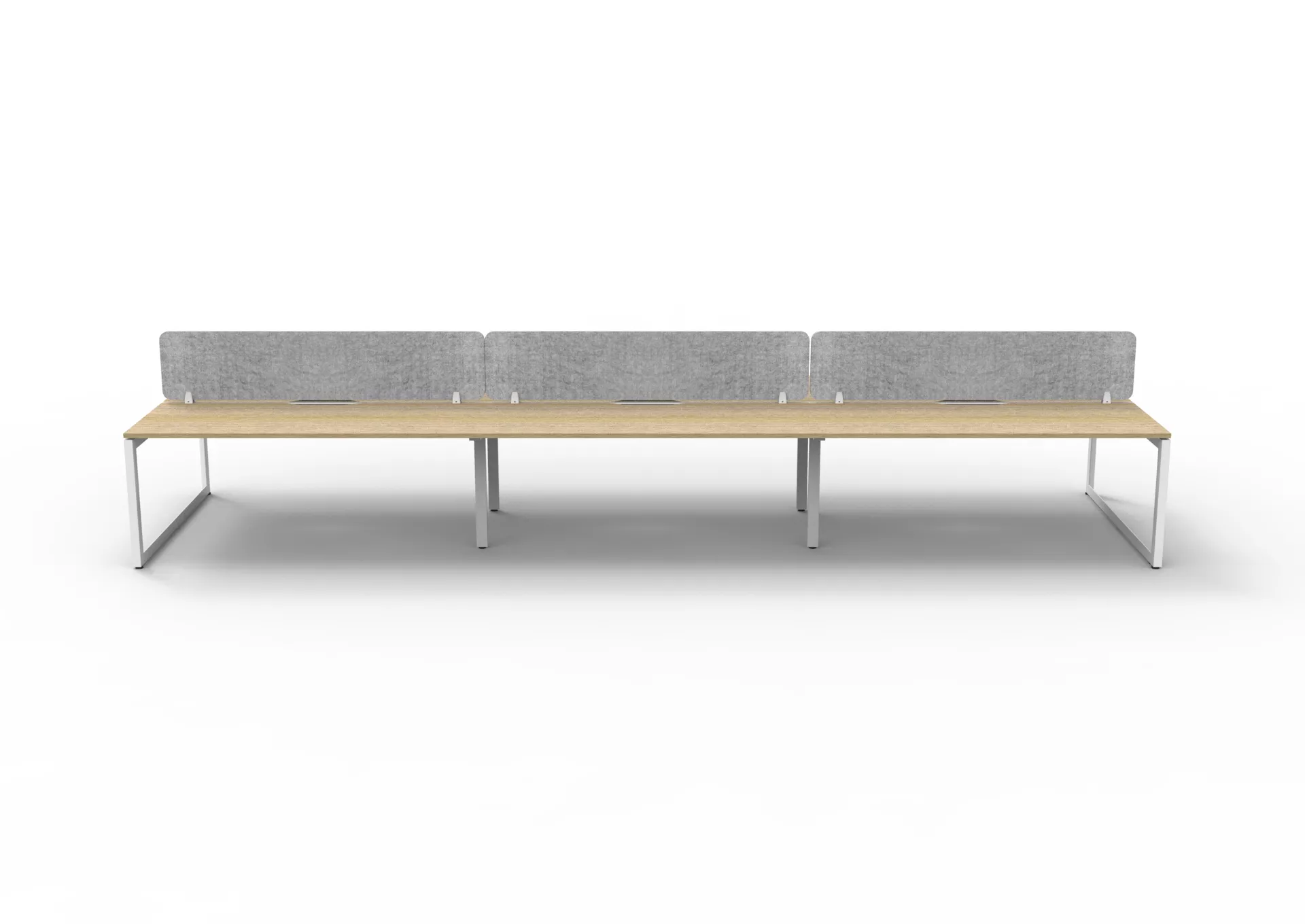 The 60 x 30 Loop legs add a minimalist look to each workstation run, and the matching dividing screen adds privacy and noise reduction to each workstation.