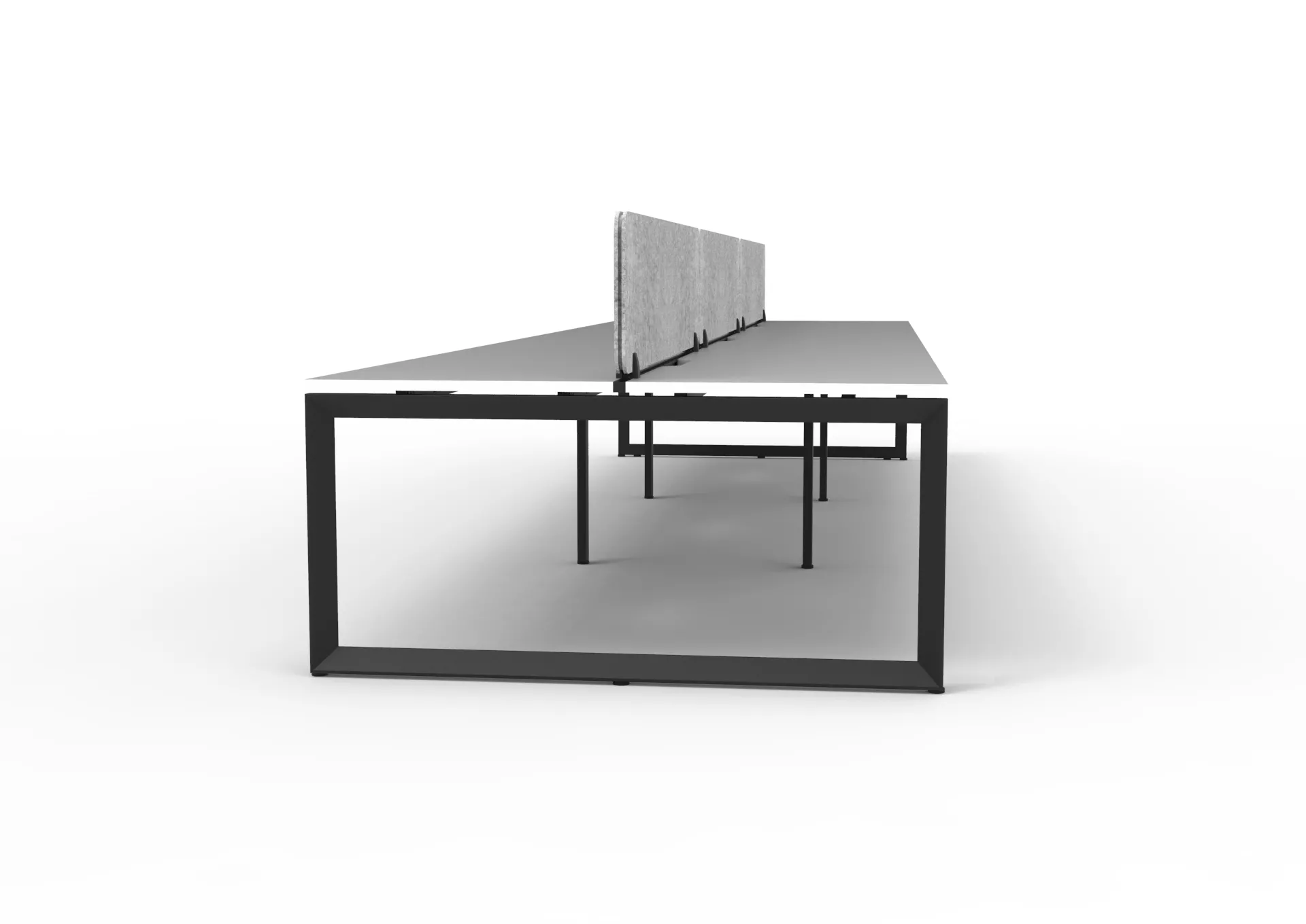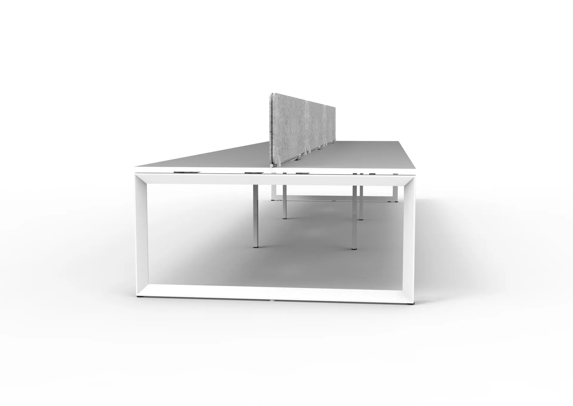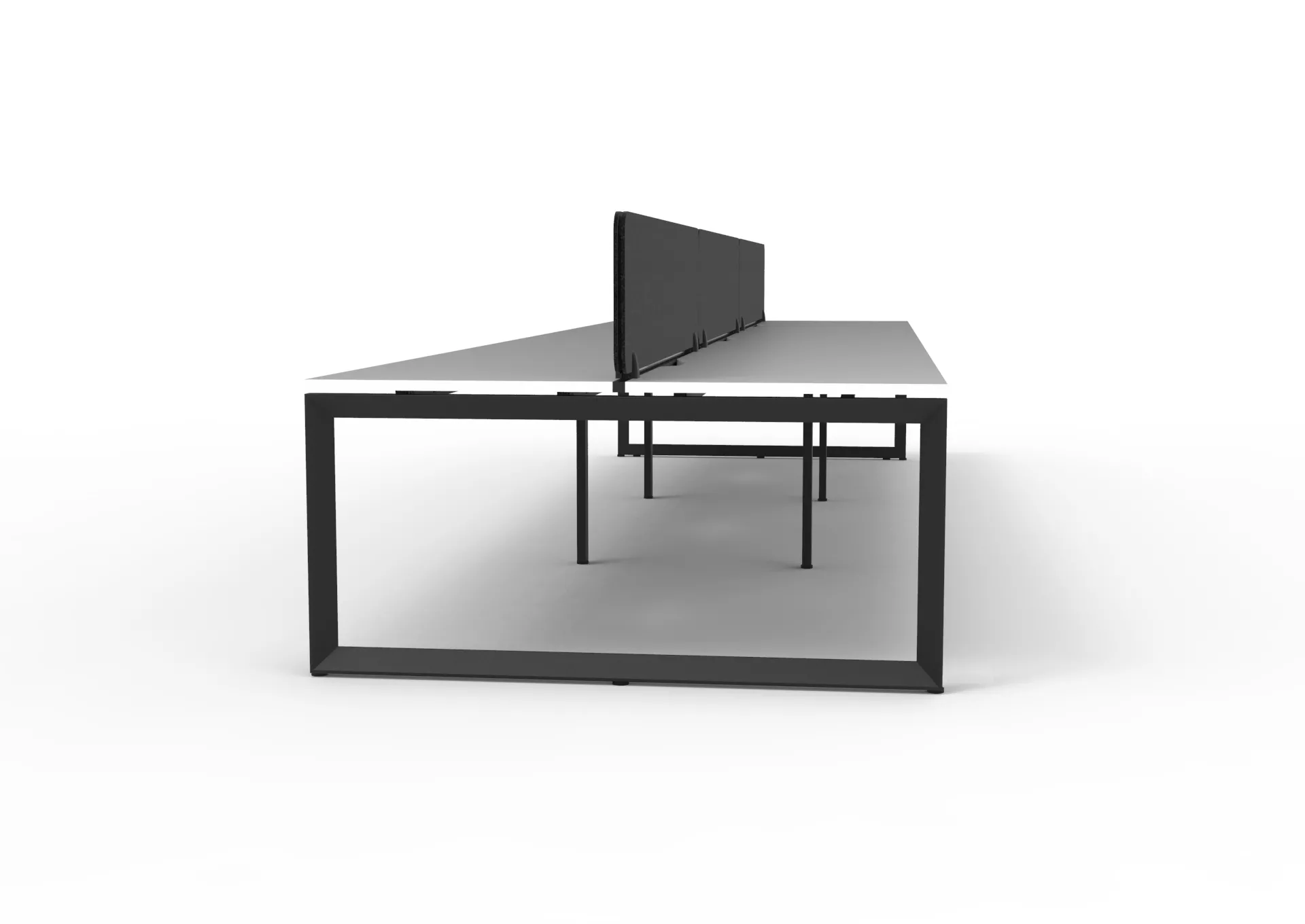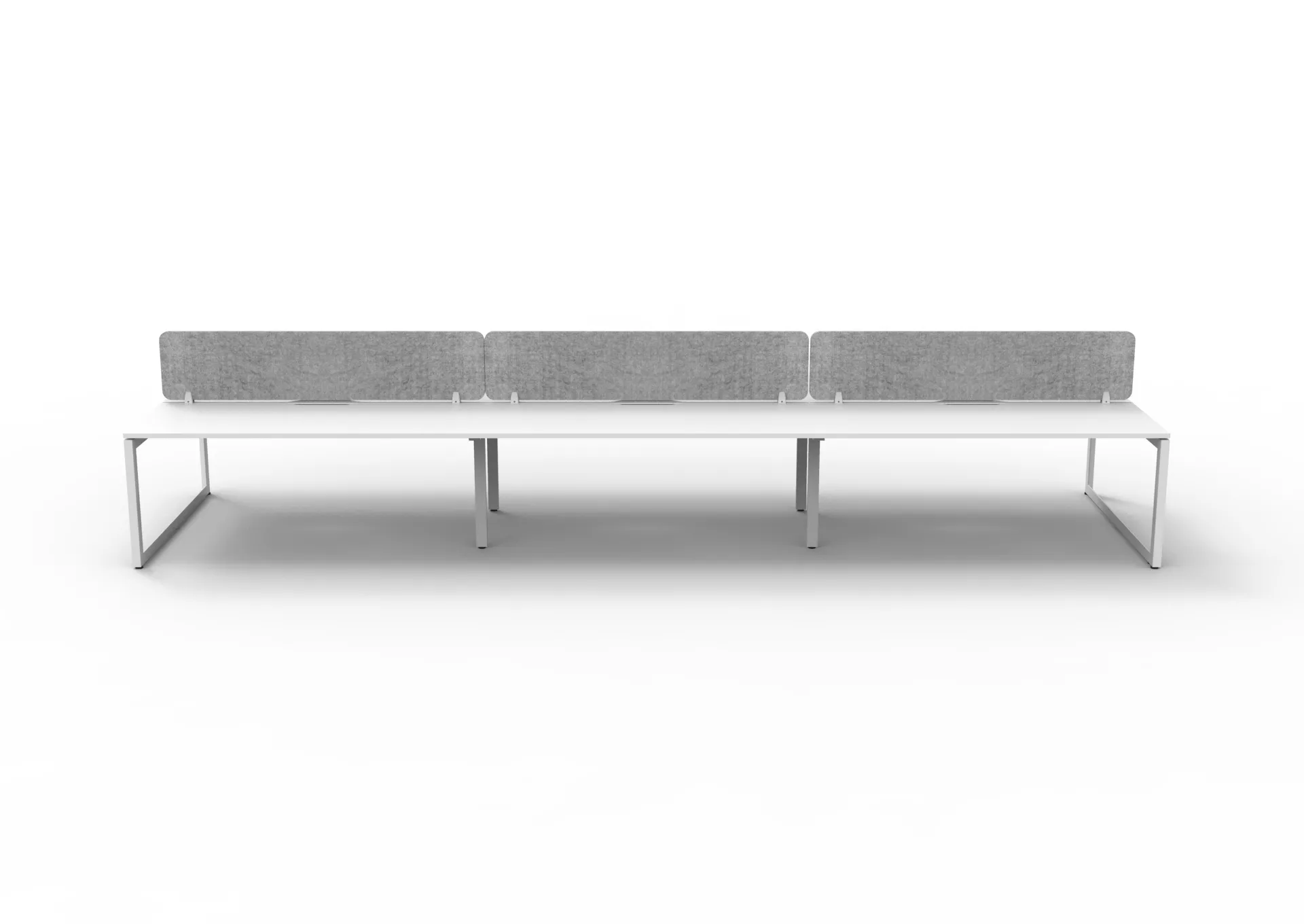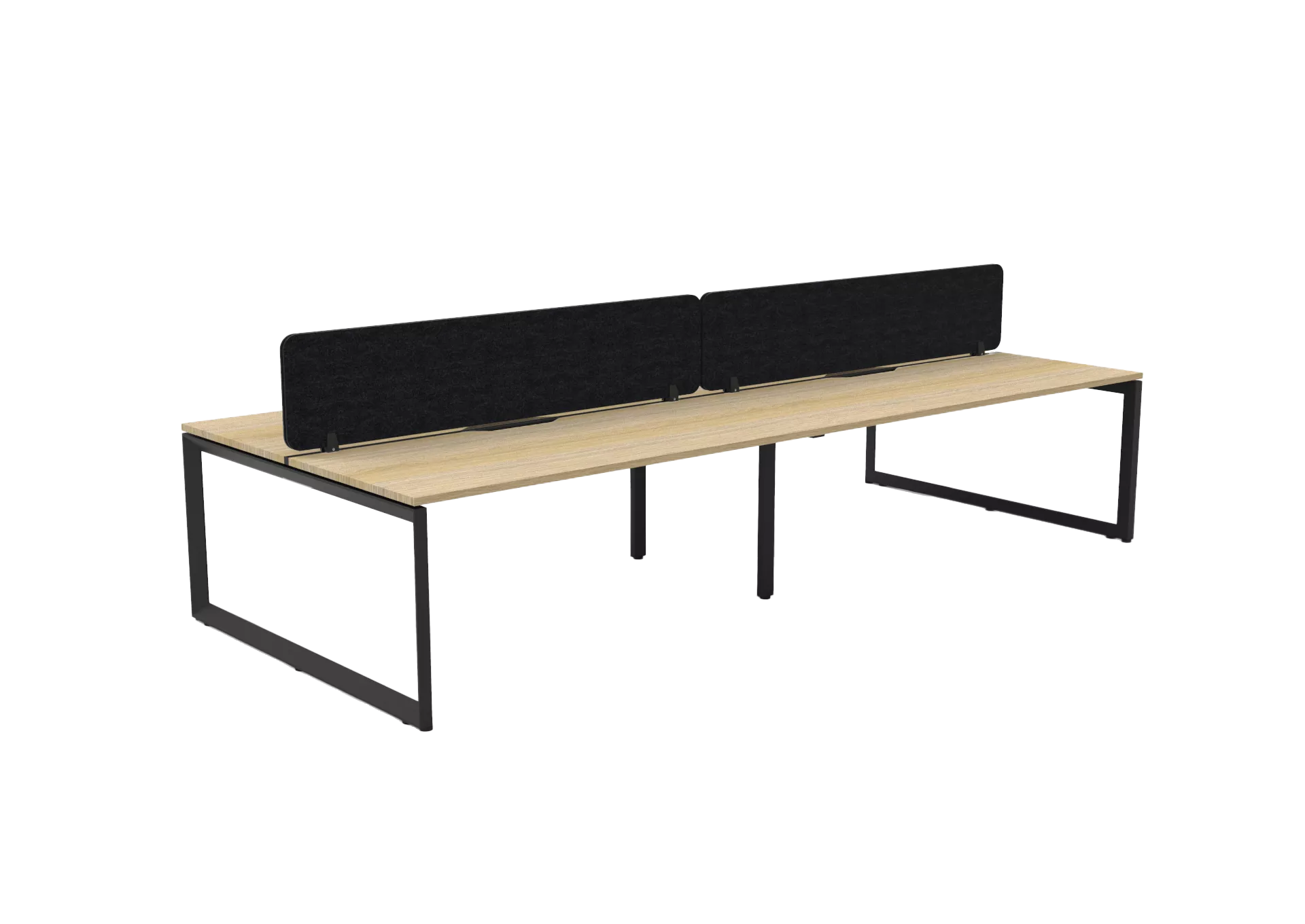 The 60 x 30 Loop legs add a minimalist look to each workstation run, and the matching dividing screen adds privacy and noise reduction to each workstation.