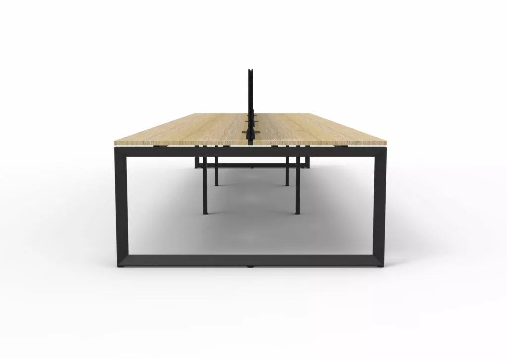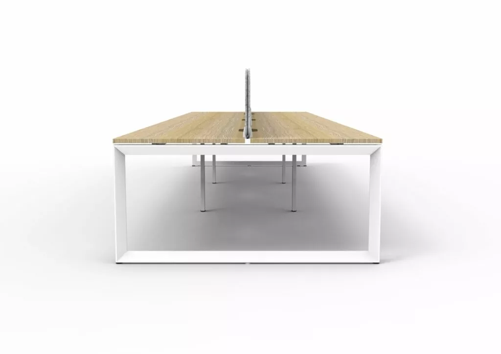 Maximise space and create an efficient working environment with Deluxe Rapid Infinity. 750mm deep Enviroboard tops, with scallop top for cable access, and a recessed leg to create full leg access in long runs of workstations.