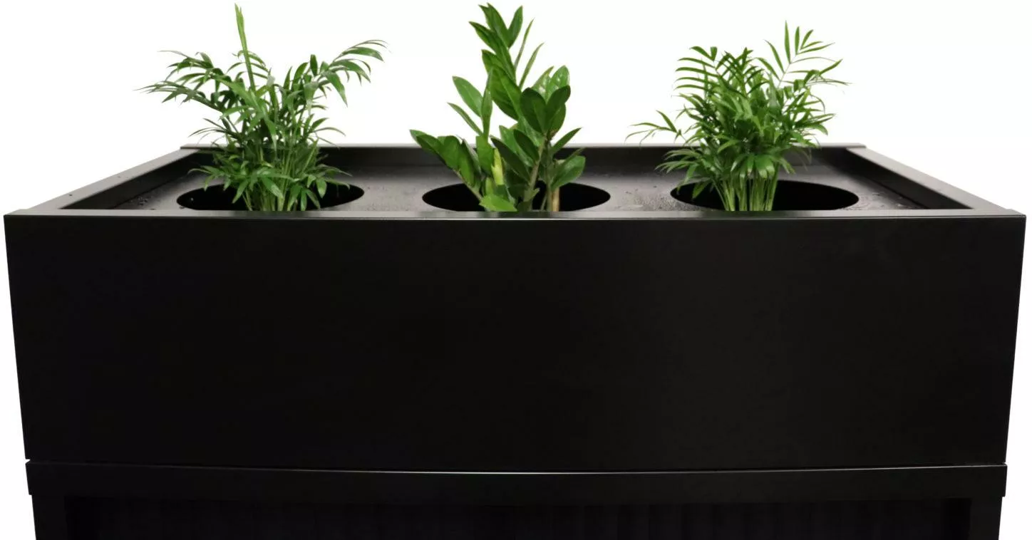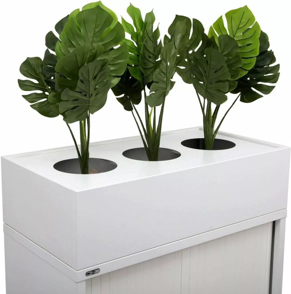 The Go Planter box will sit on top of a Tambour door cupboard or Lateral Filing cabinet and can be used with artificial or live plants.