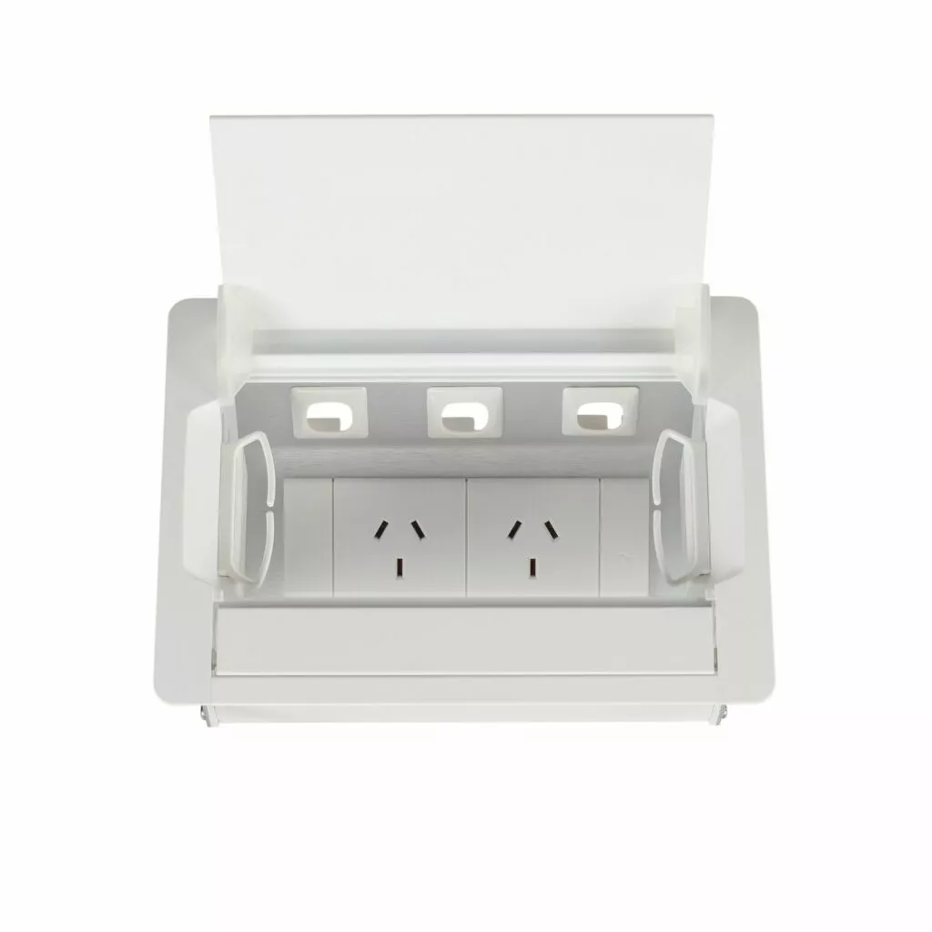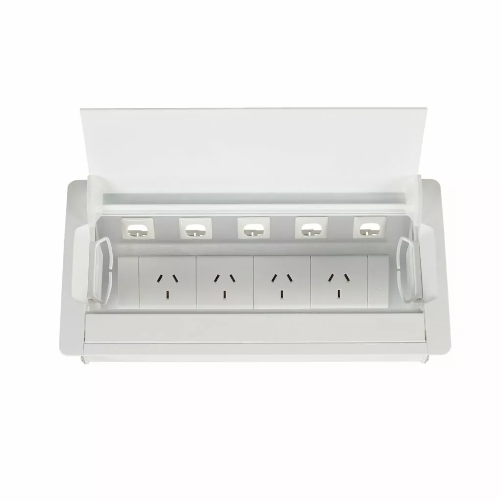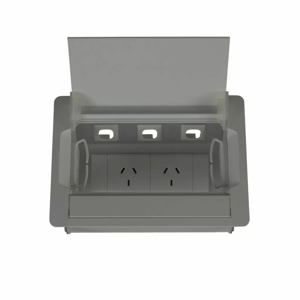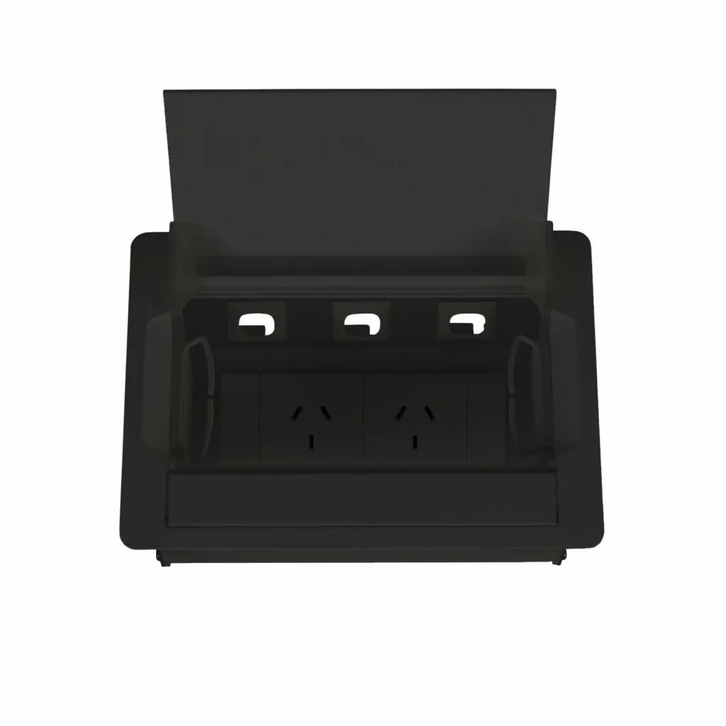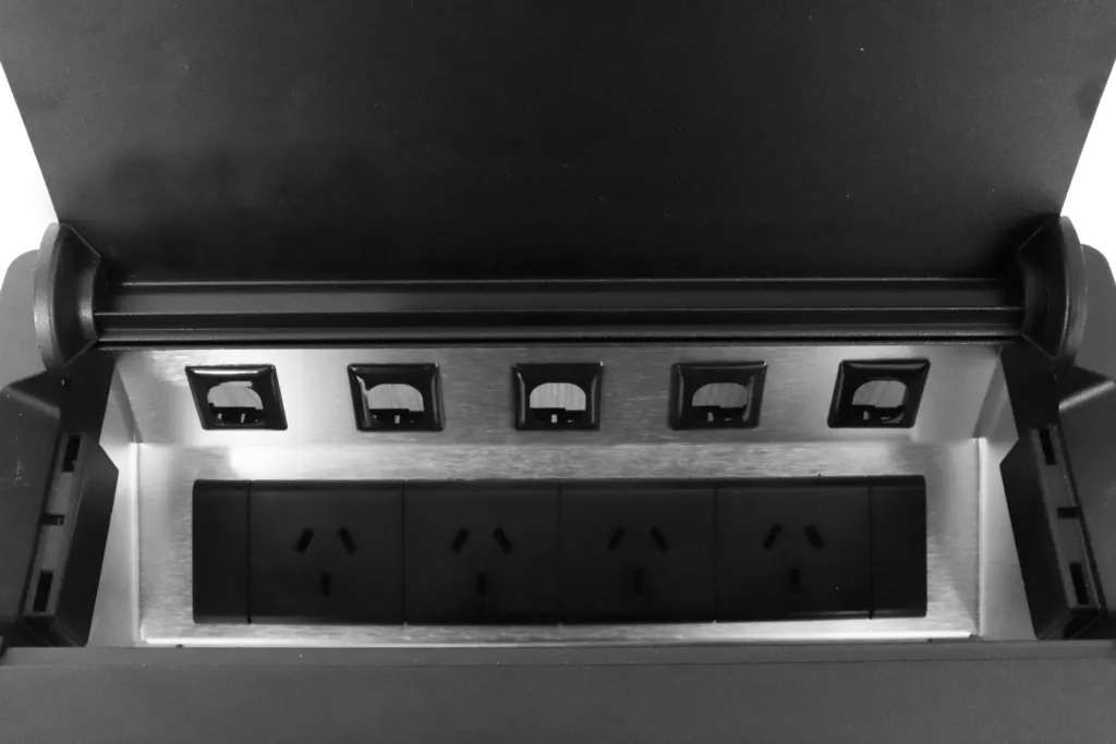 Maintain a clean, tidy look to your boardroom or meeting table with a Boardroom table box. The lid closes to obscure power and data points.