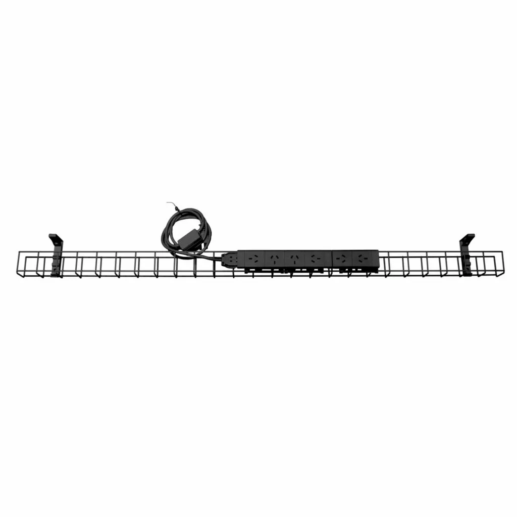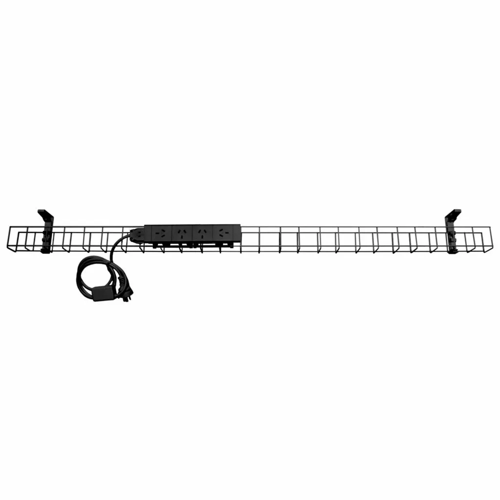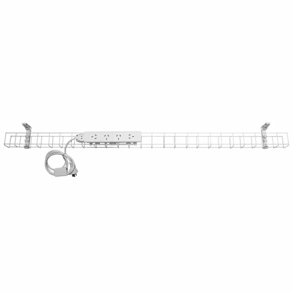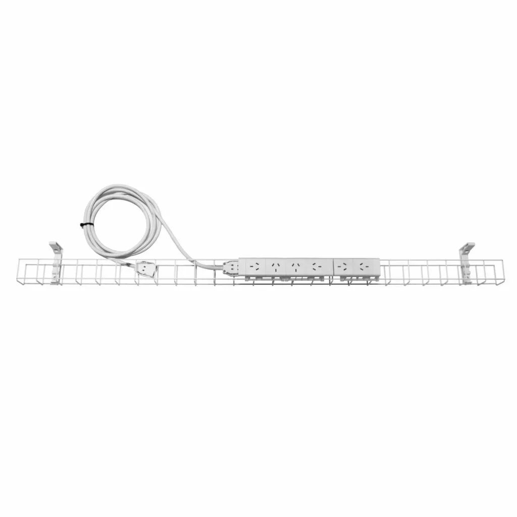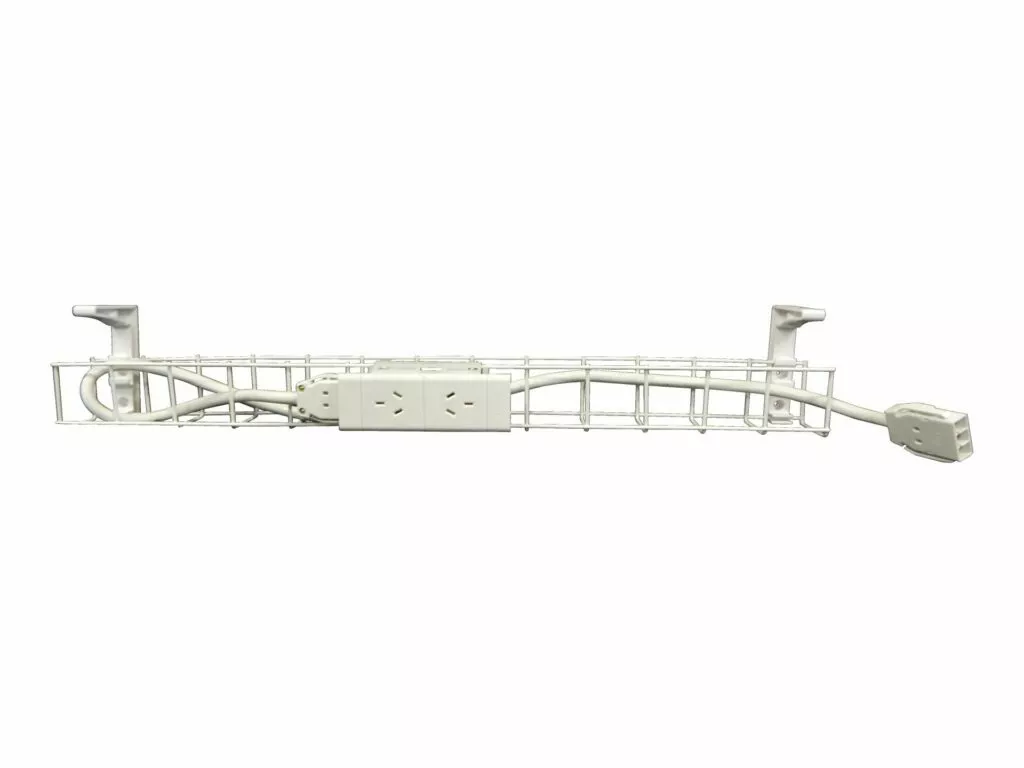 Manage your wiring under desk with a cable basket. The single tier basket takes power only, and can connect to power coming from the wall or ceiling.