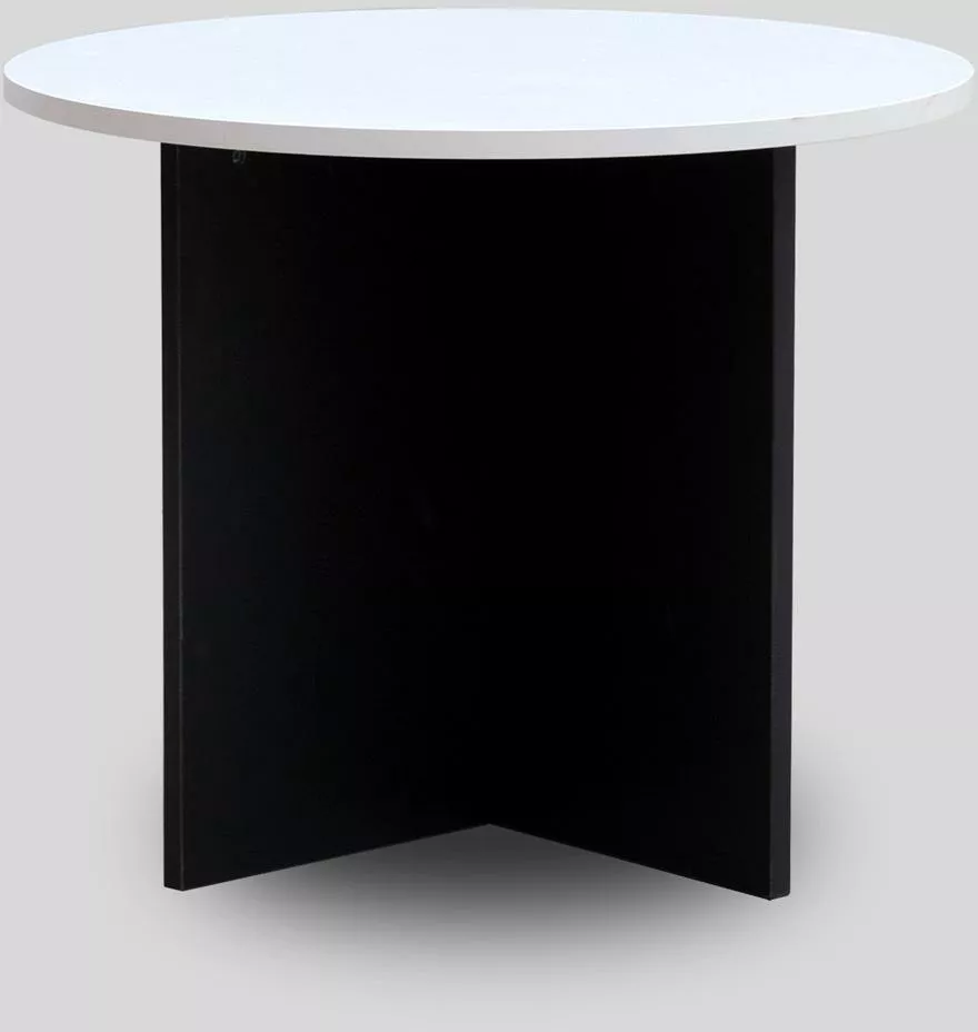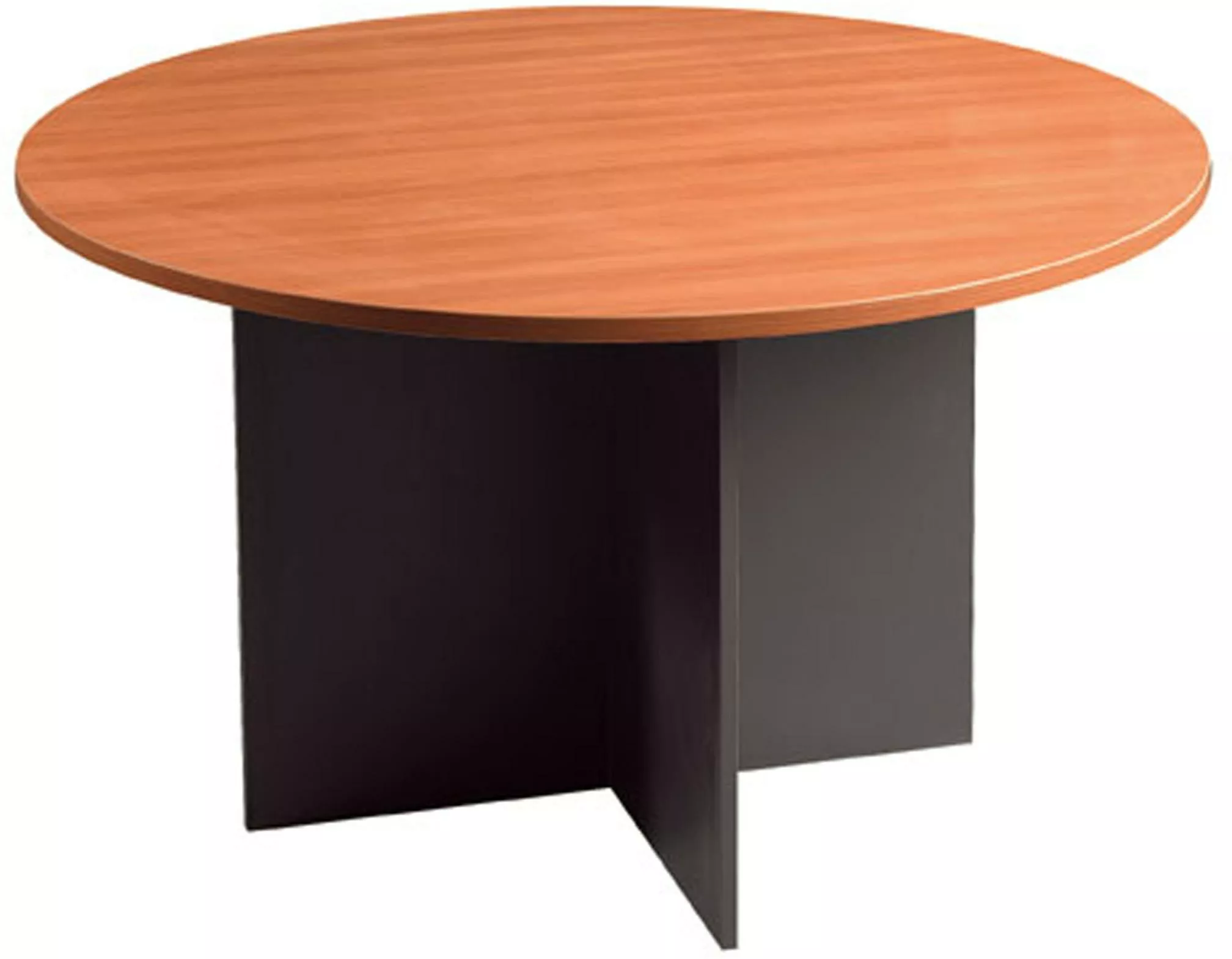 Round meeting table with stable cross base legs, comfortably seat 4 people. 3 year warranty. Available in 2 sizes.