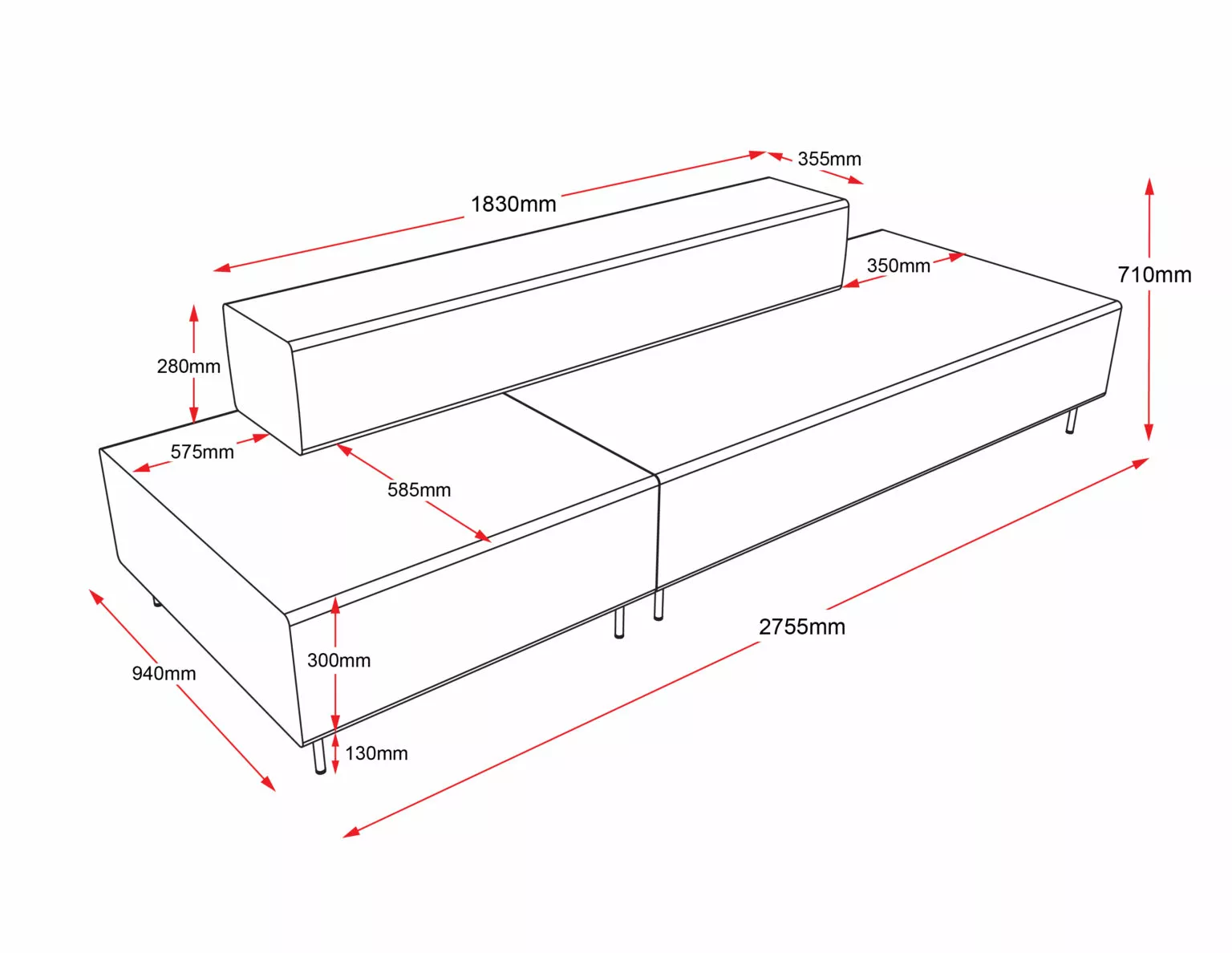 Overall Size – 2755mm W x 940mm D x 710mm H