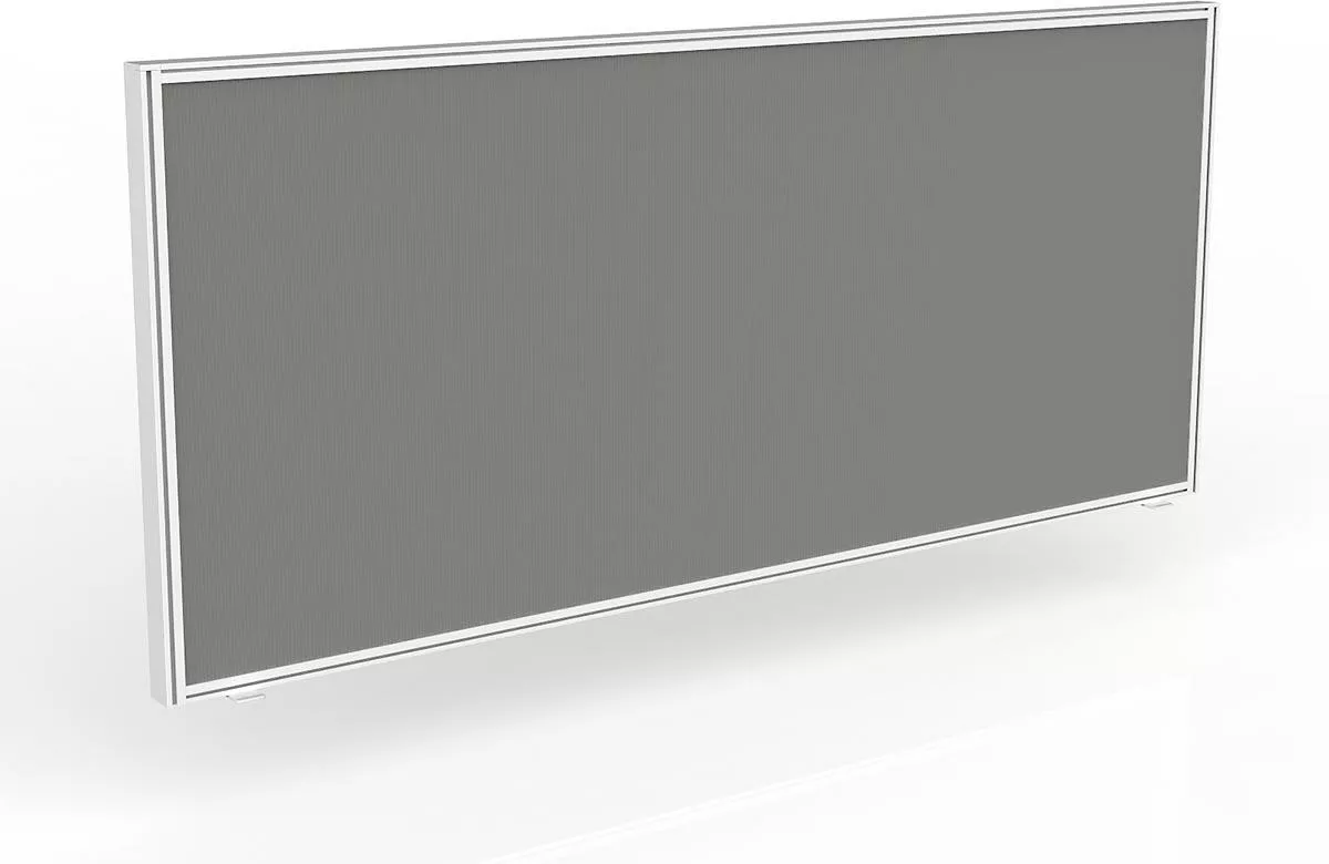 Studio screen to fit Agile shared double sided desk. White or black powdercoated 50mm frame and lightweight, pinnable core with your choice of Breathe or Splice fabric. Optional in-screen ducting.
