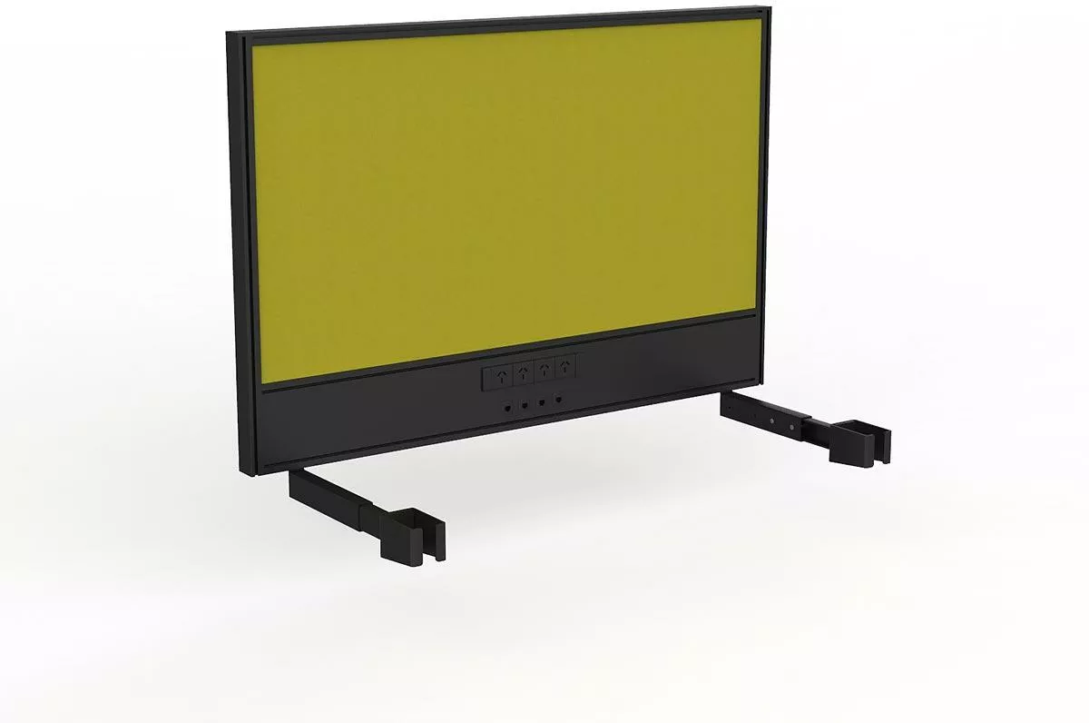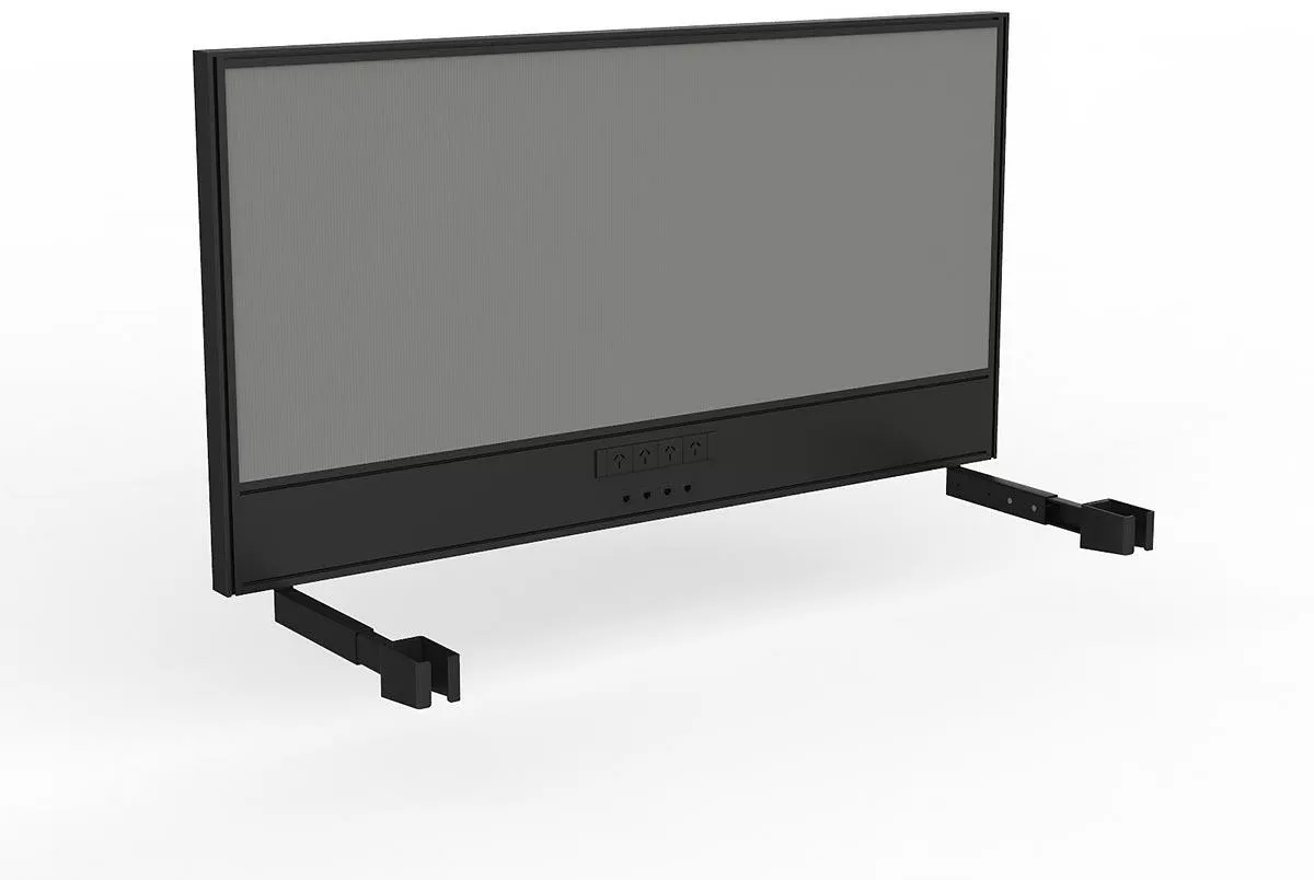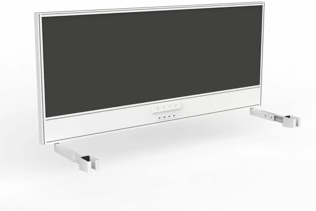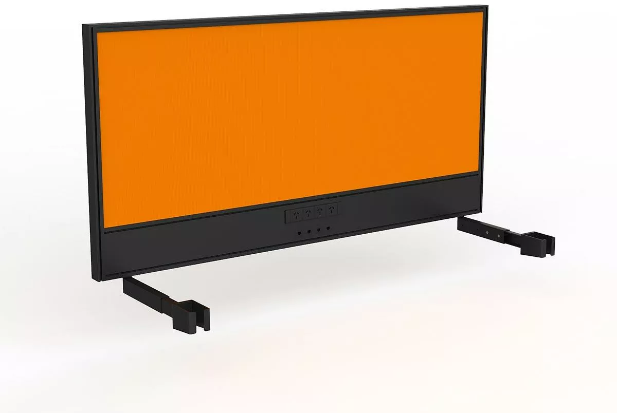 Studio screen to fit Agile individual desk. White or black powdercoated 50mm frame and lightweight, pinnable core with your choice of Breathe or Splice fabric. Includes desk hung screen brackets. Optional in-screen ducting or bracket-mounted cable tray.