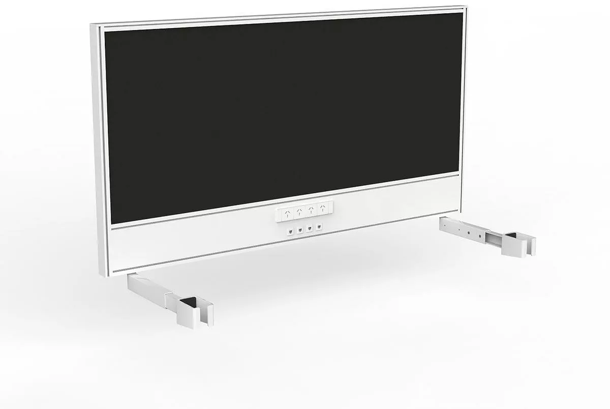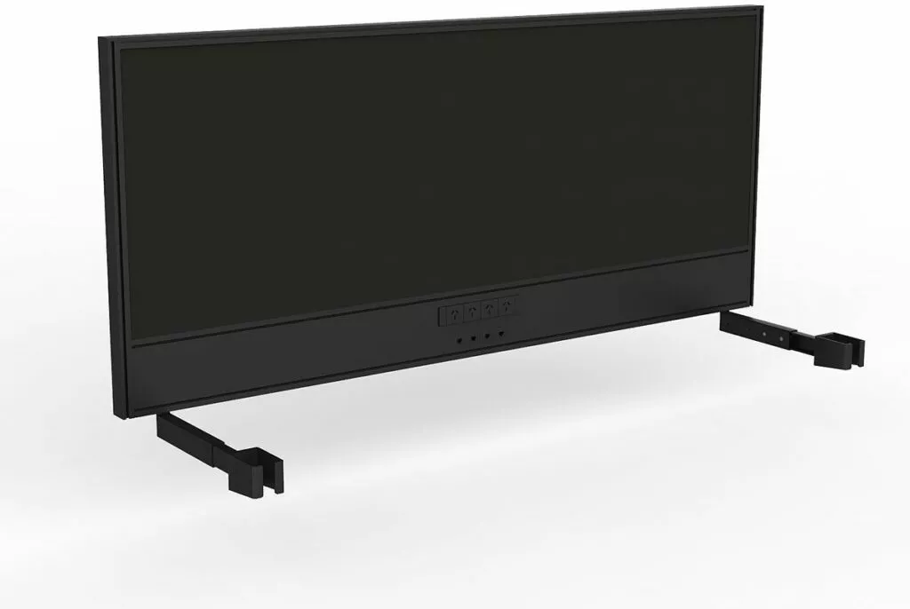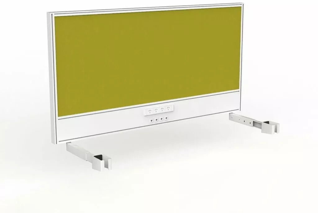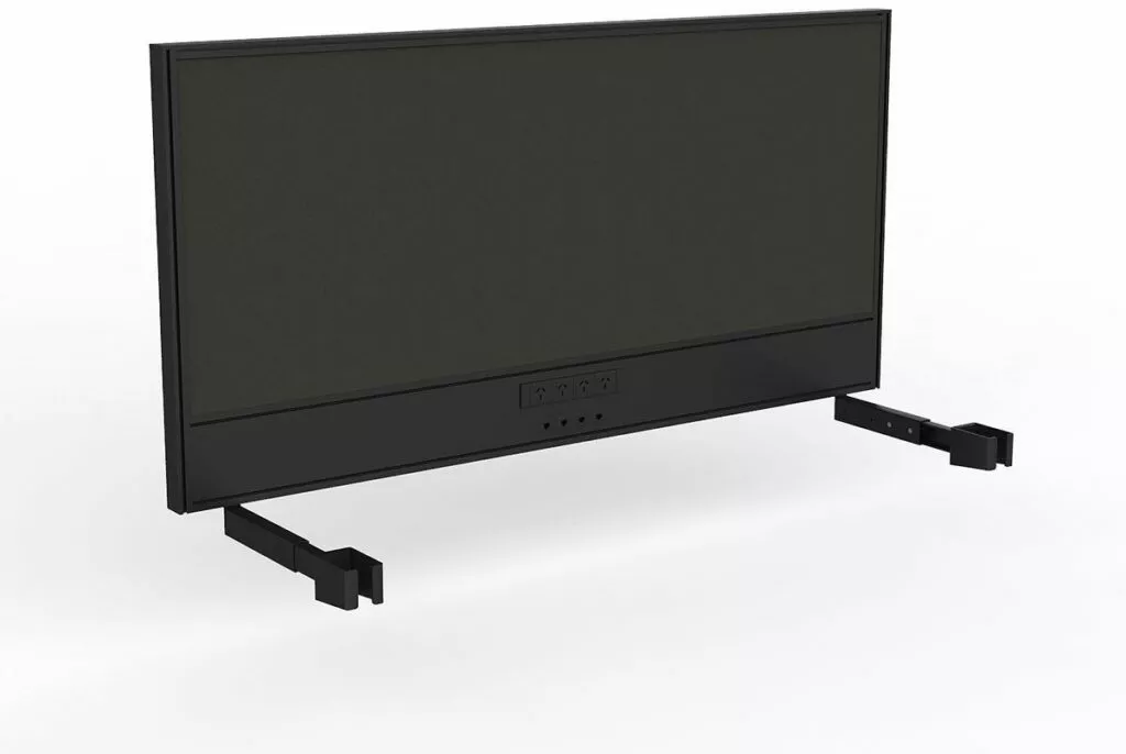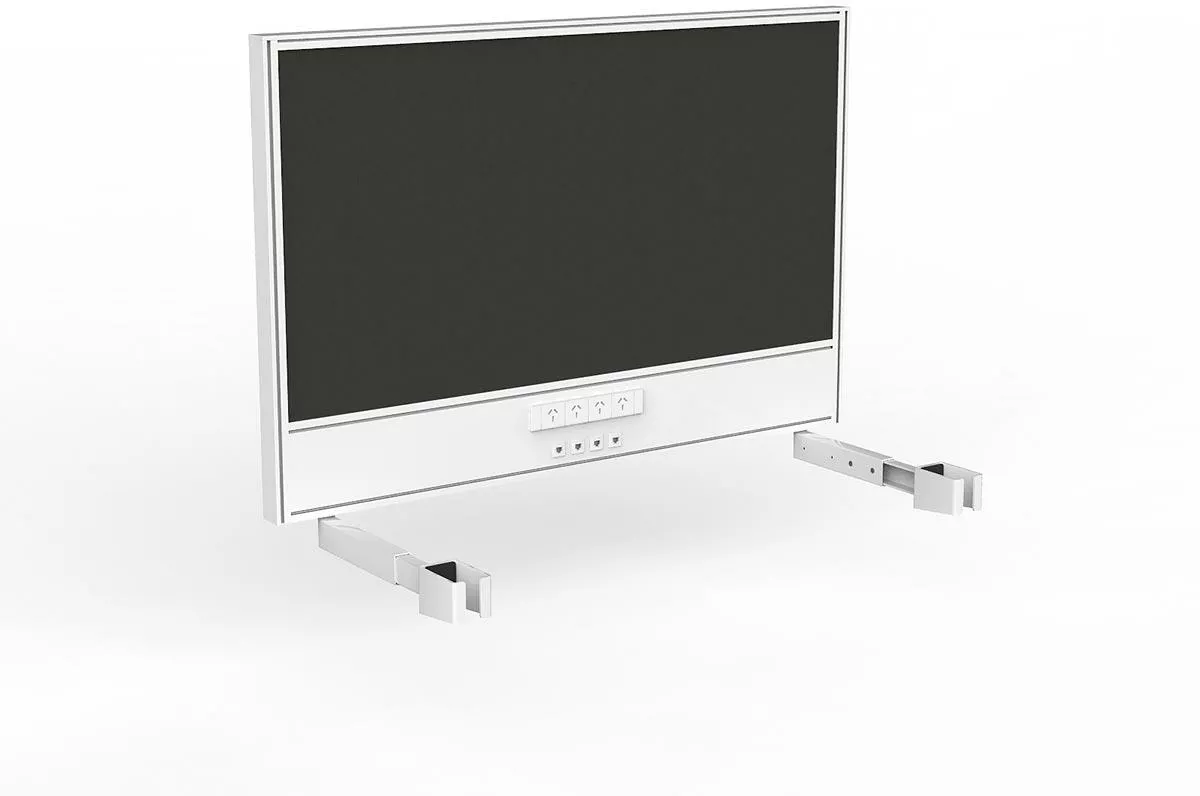 Studio screen to fit Agile individual desk. White or black powdercoated 50mm frame and lightweight, pinnable core with your choice of Breathe or Splice fabric. Includes desk hung screen brackets. Optional in-screen ducting or bracket-mounted cable tray.