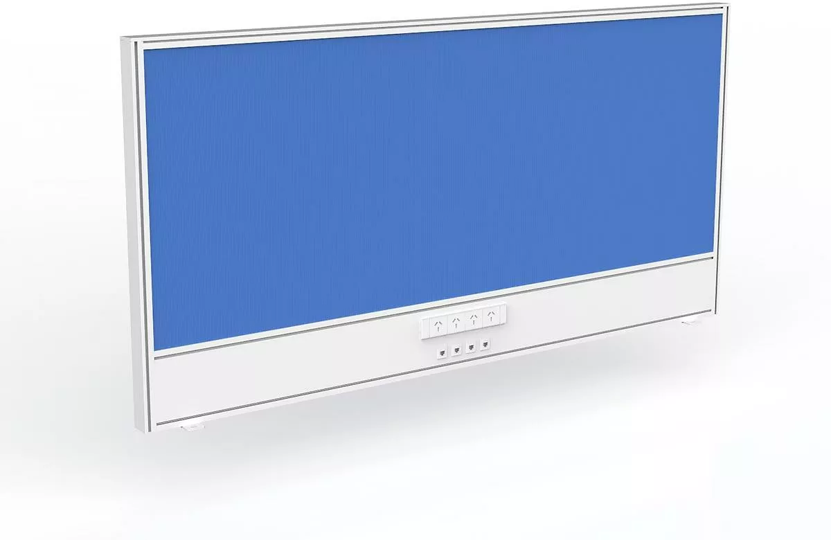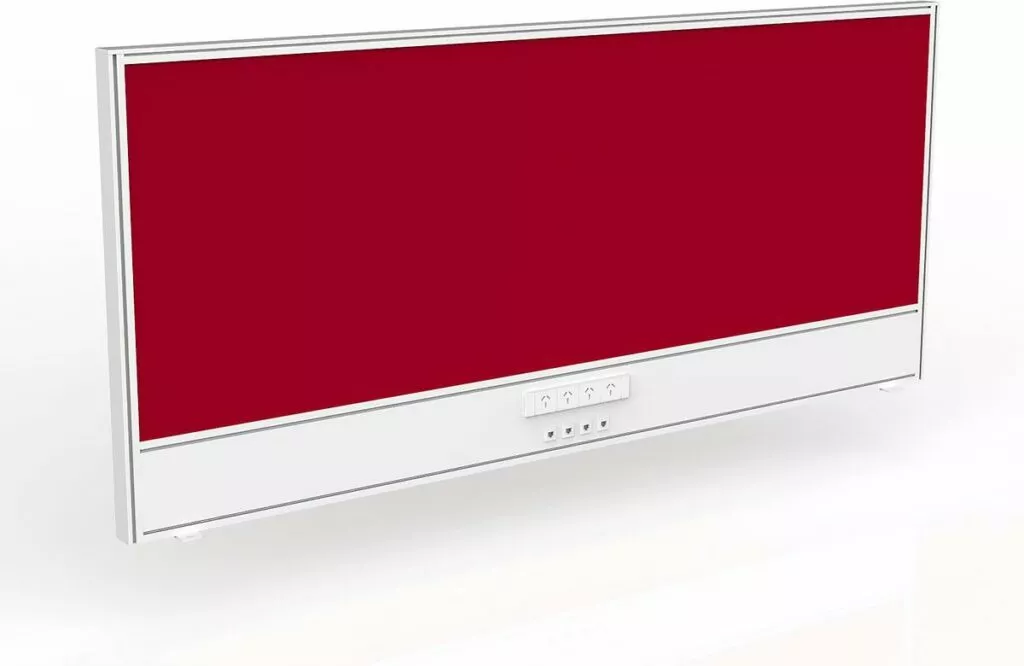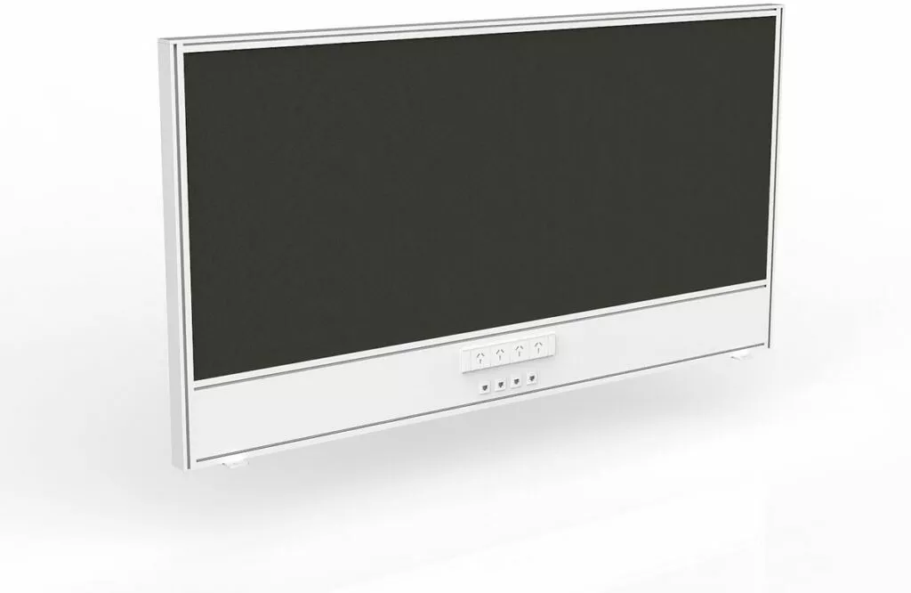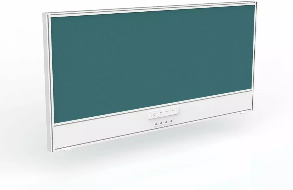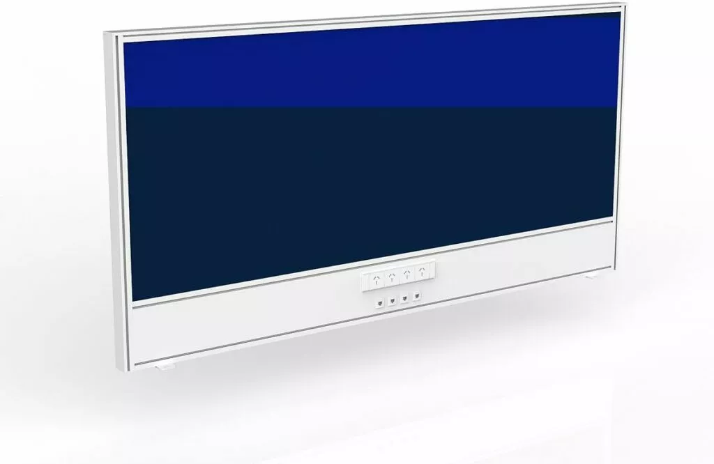 Studio screen to fit Agile shared double sided desk. White or black powdercoated 50mm frame and lightweight, pinnable core with your choice of Breathe or Splice fabric. Optional in-screen ducting.