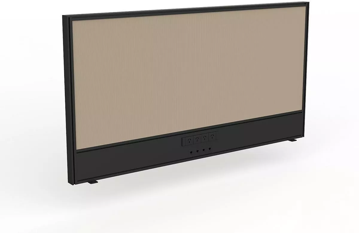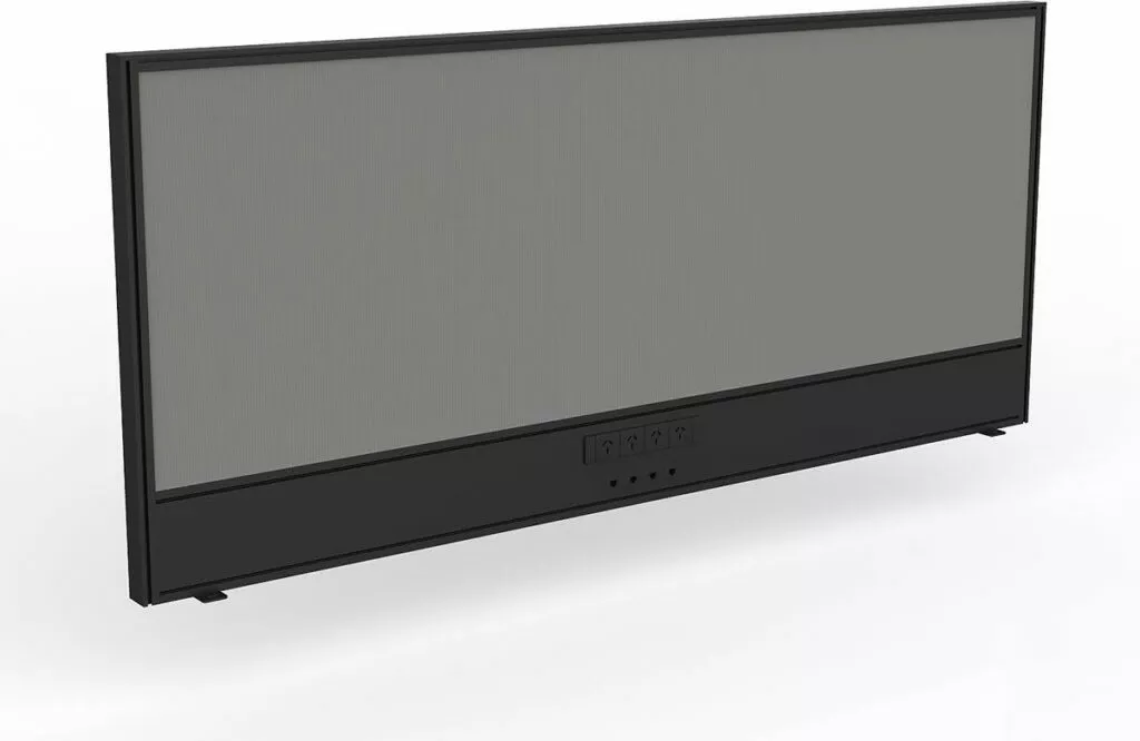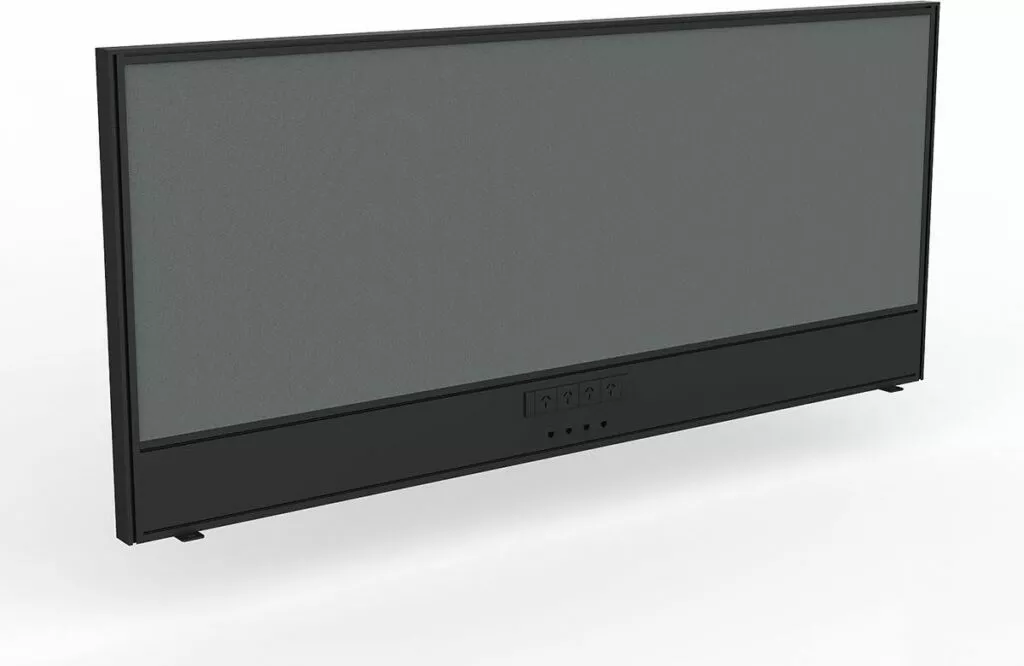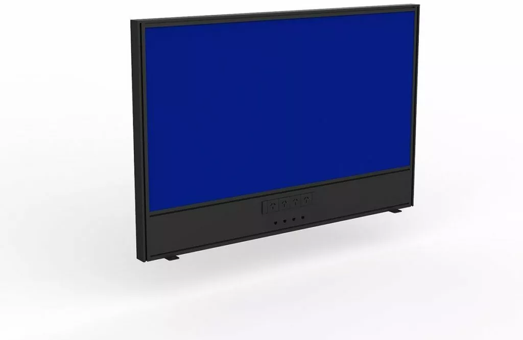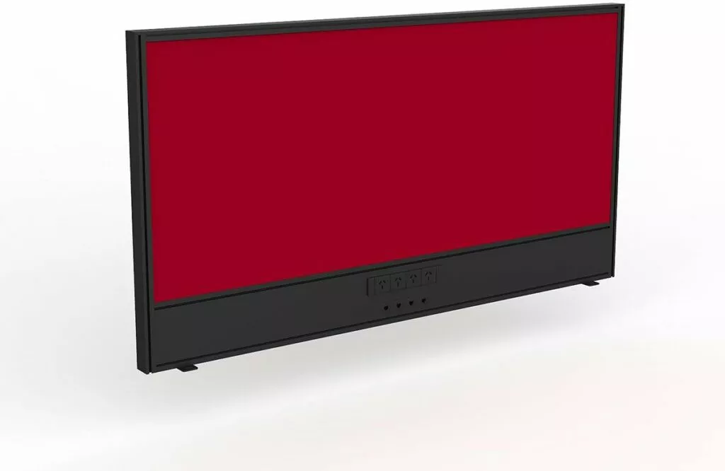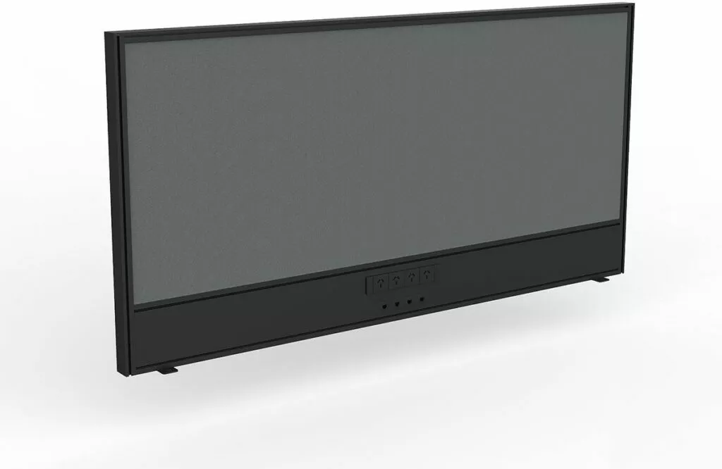 Studio screen to fit Agile shared double sided desk. White or black powdercoated 50mm frame and lightweight, pinnable core with your choice of Breathe or Splice fabric. Optional in-screen ducting.
